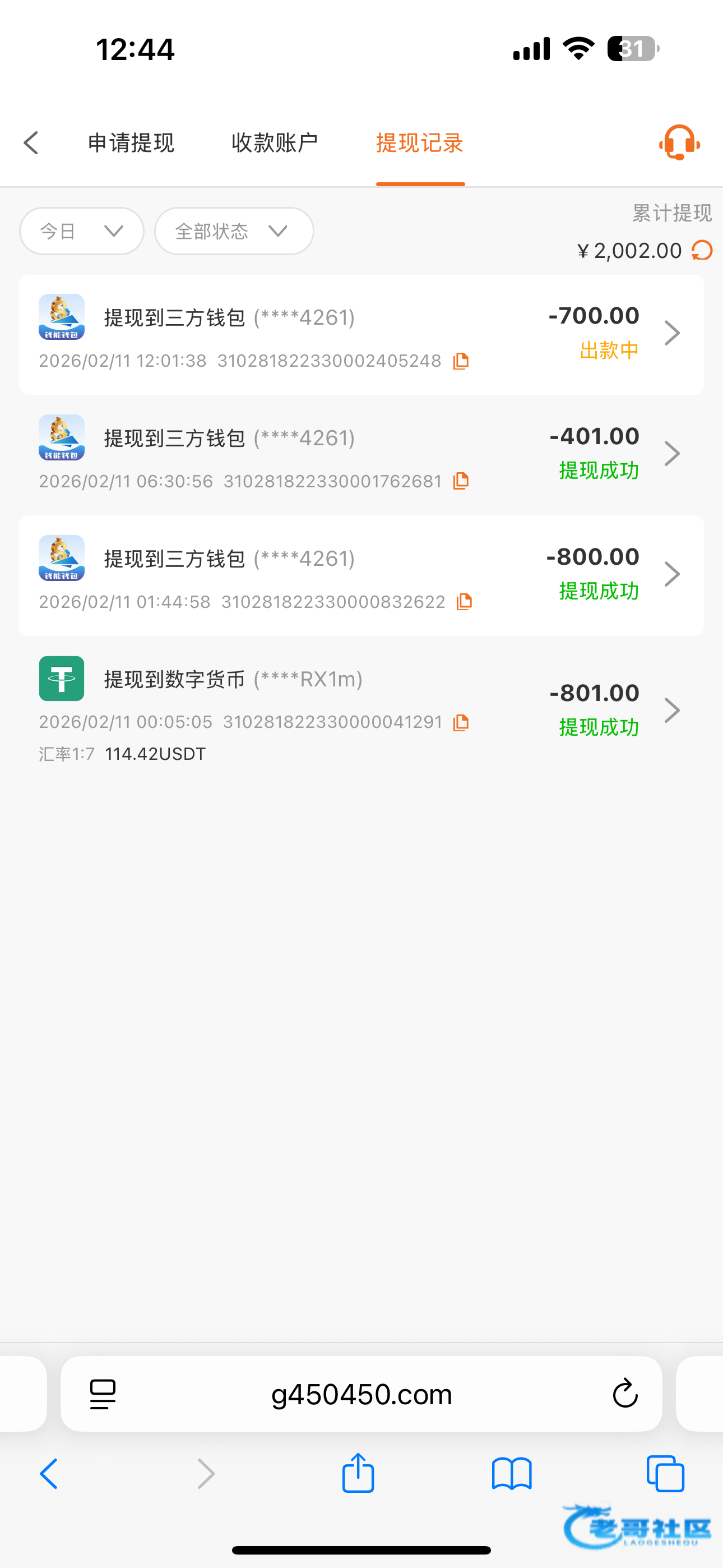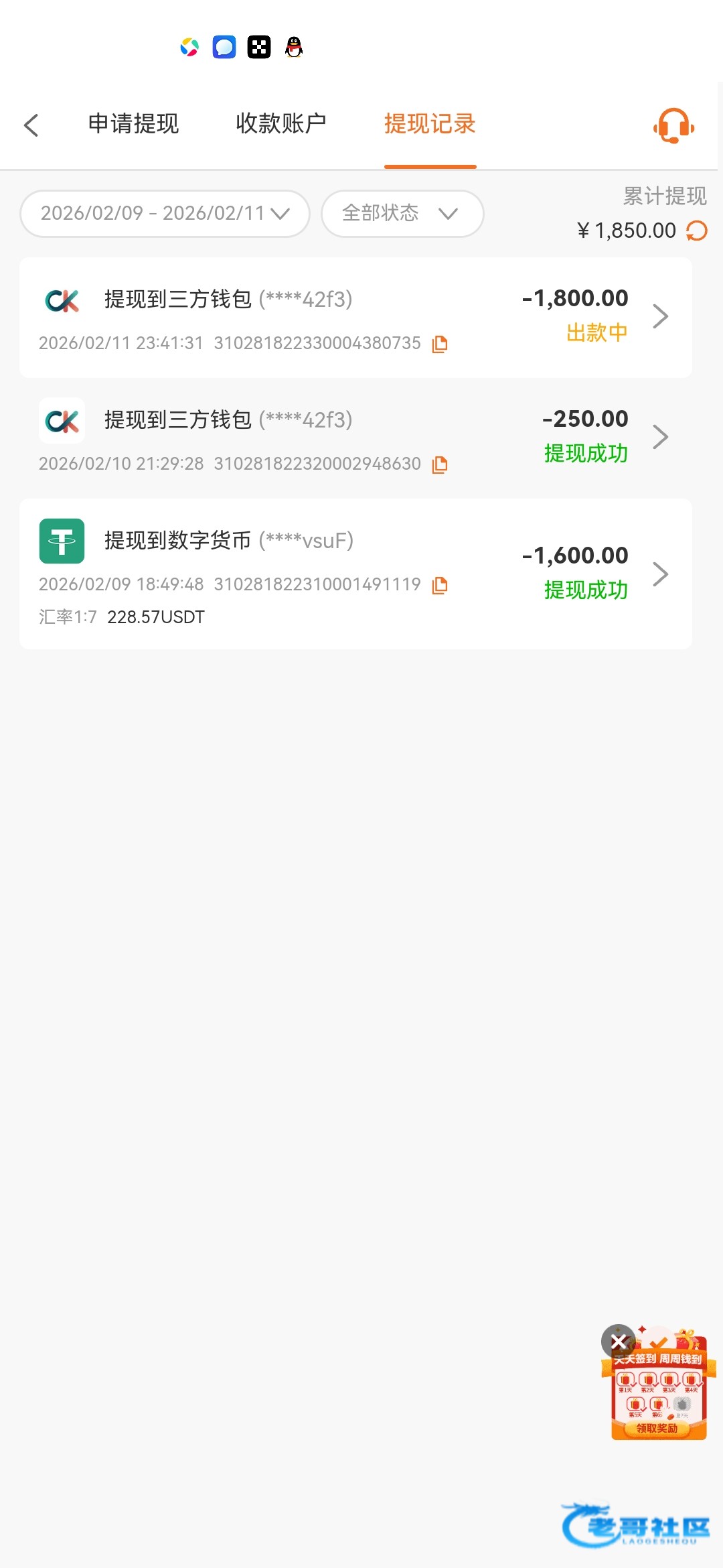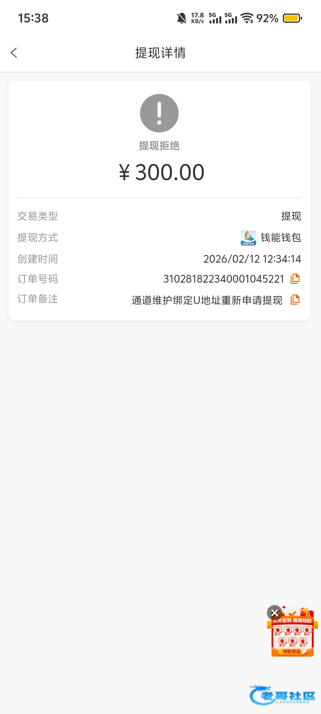 提现退回了