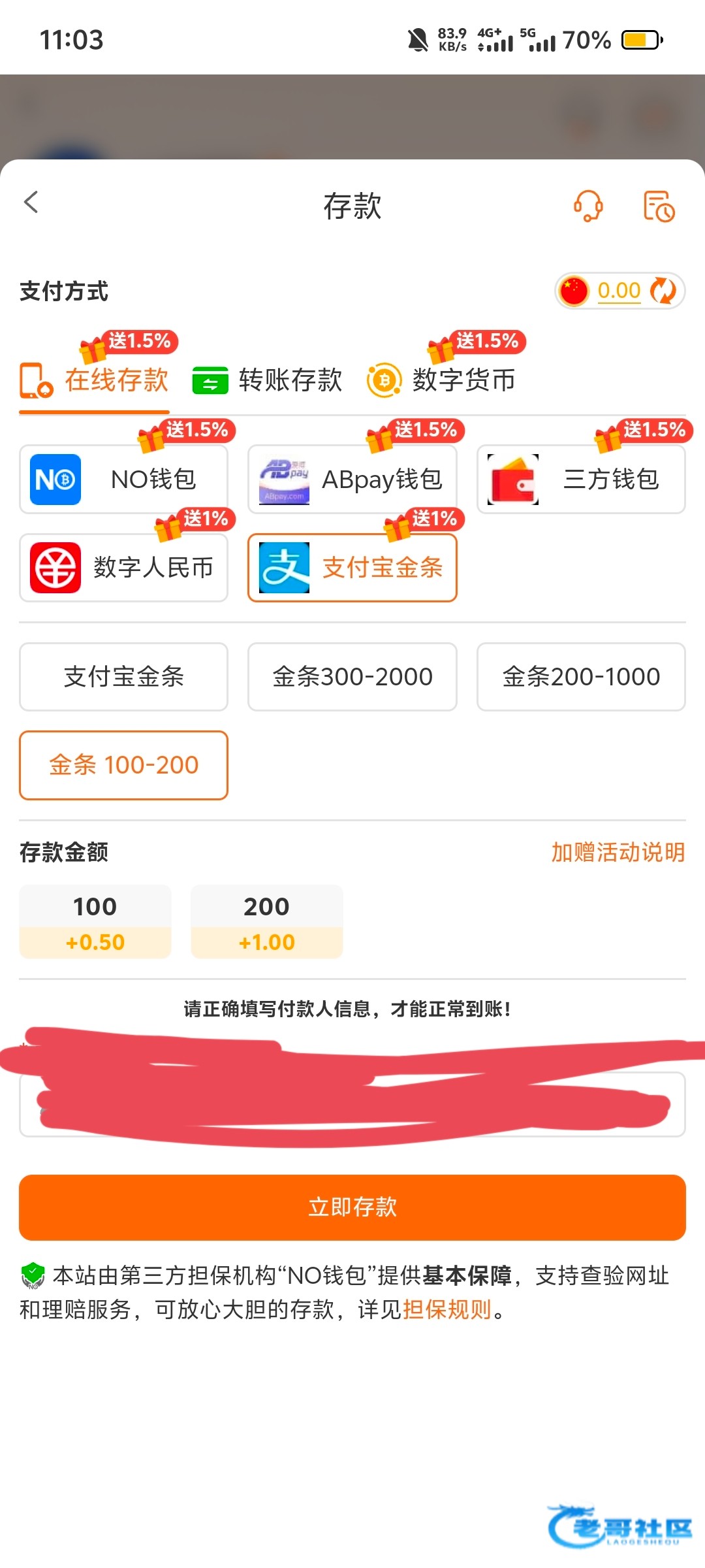 支付宝金条支付的