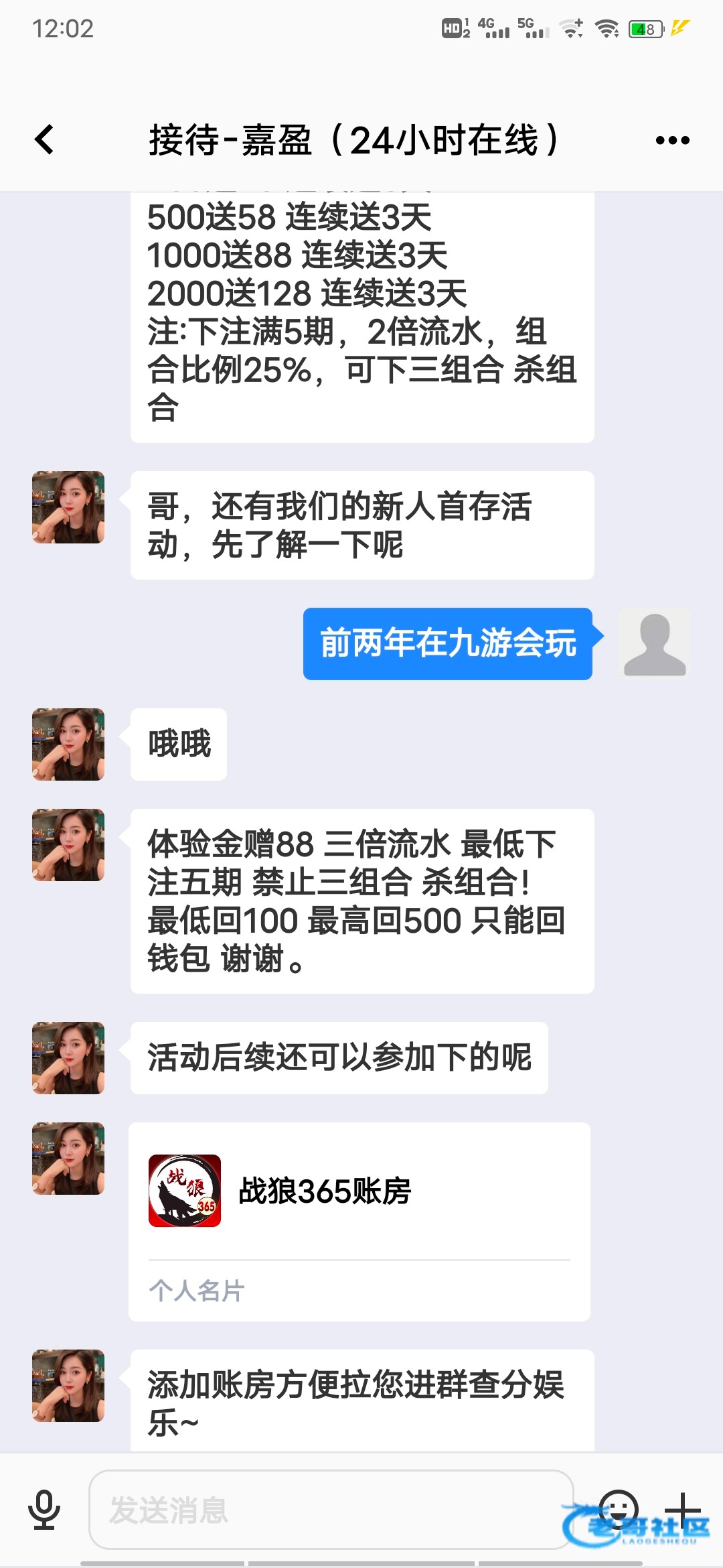 以前送过7天68 今天又收到微信特邀了 去了让打活动 100+56 200+88 战狼365最高下过一千左右 怕黑没多玩