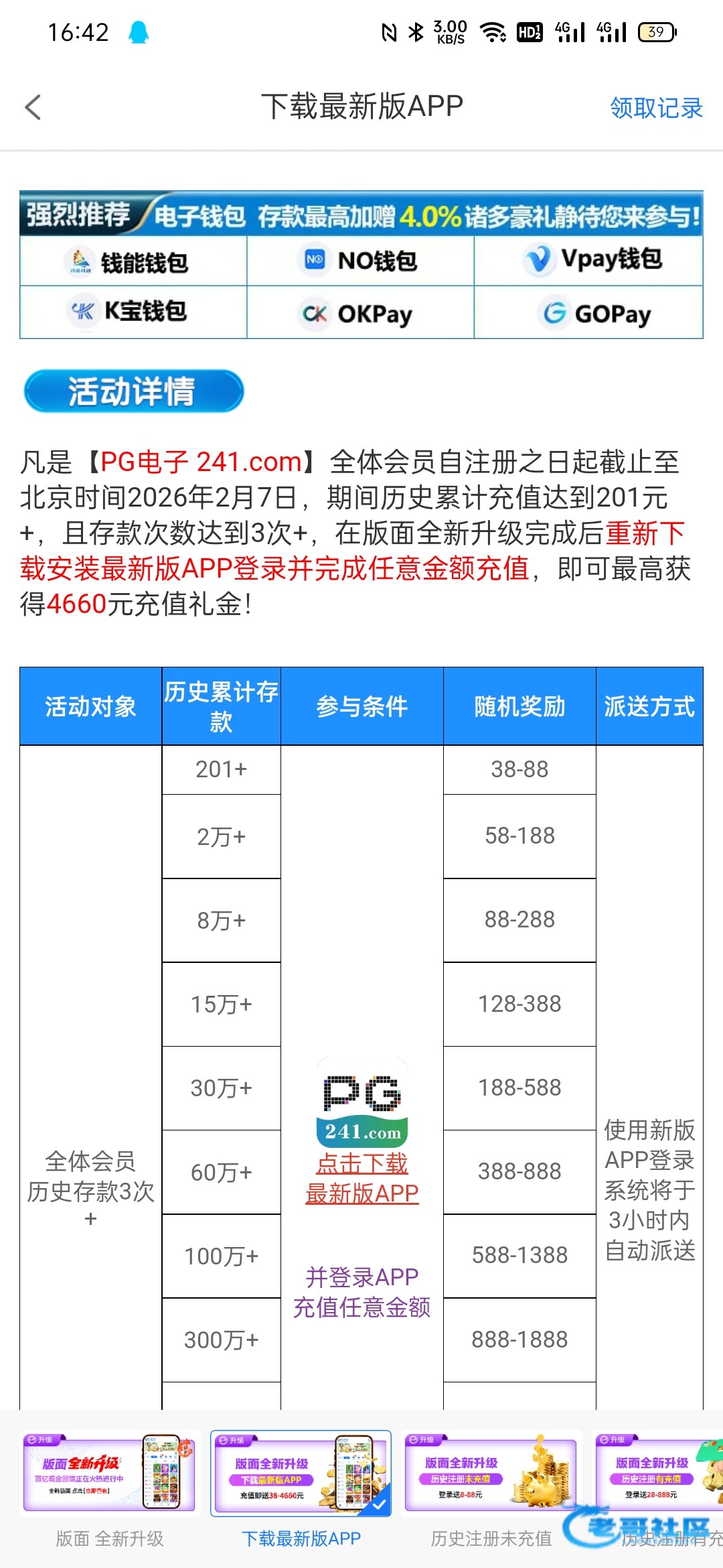 241.com只有人发升级彩金,没人留意这个新版app彩金吗,老用户充10元送最低38元