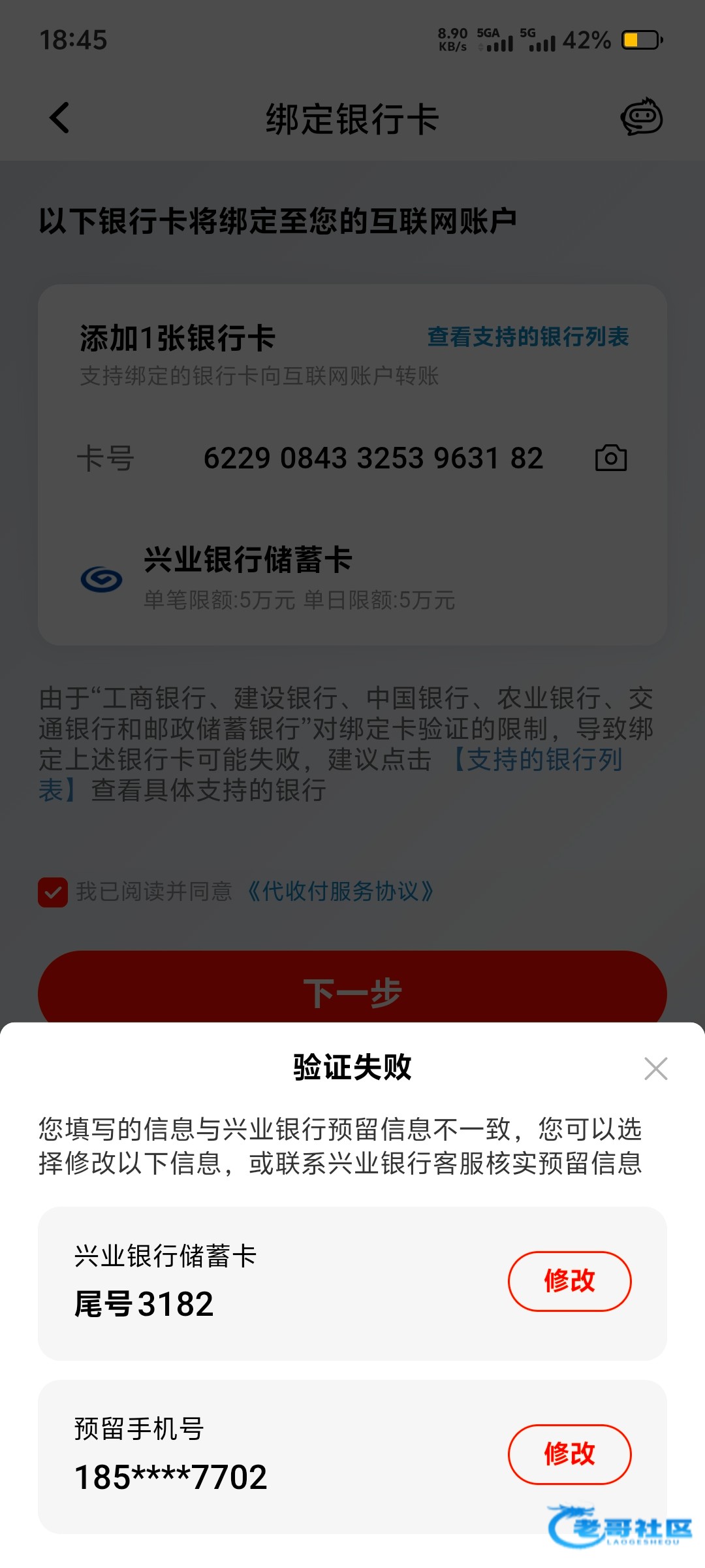 提不出来绑卡说什么信息不符合  666