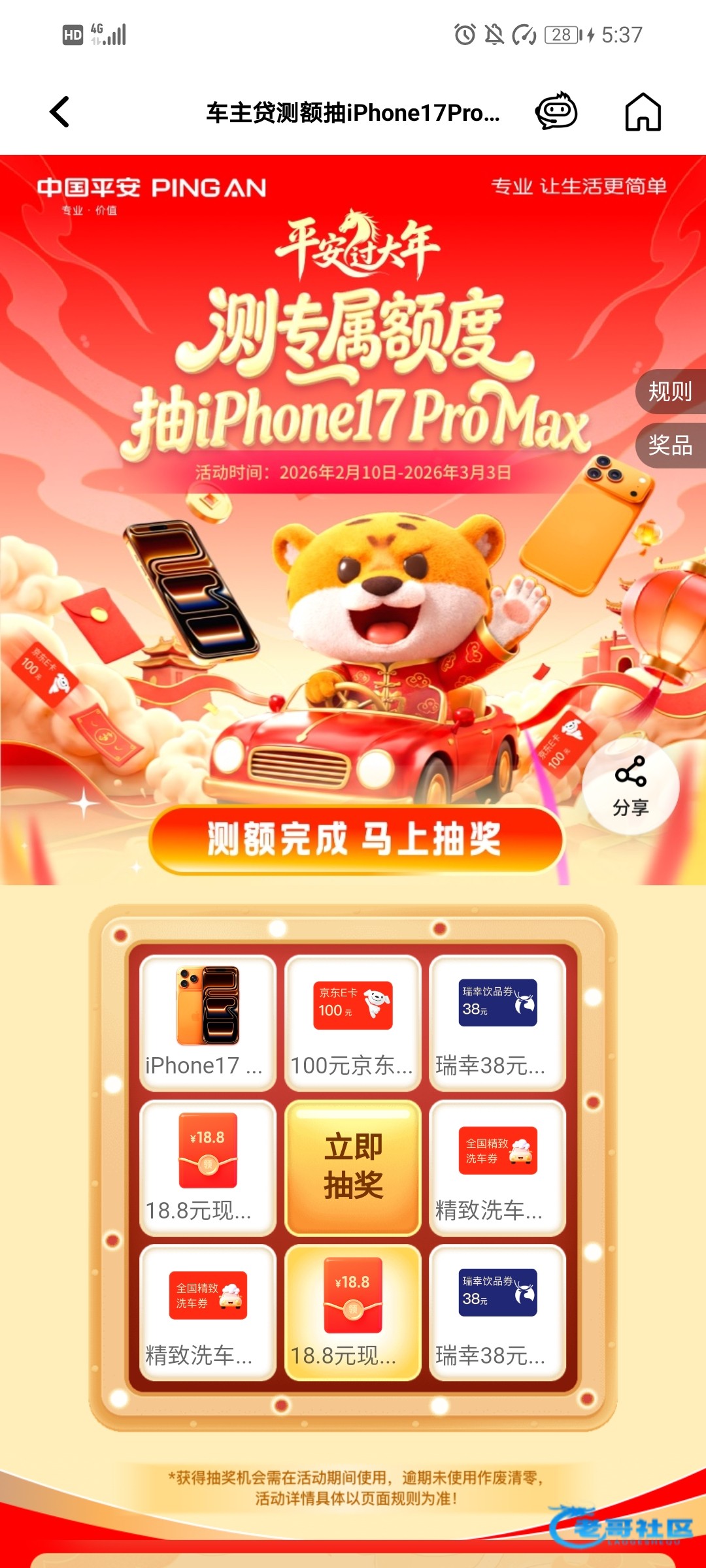 【平安车主贷测额抽奖】