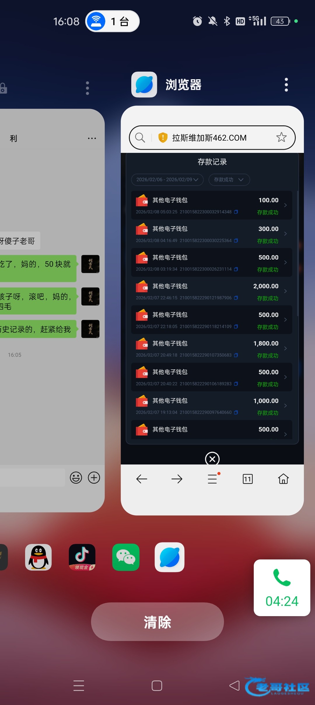 100上了两个w.两个平台都盈利了后面又送给了一个野鸡
