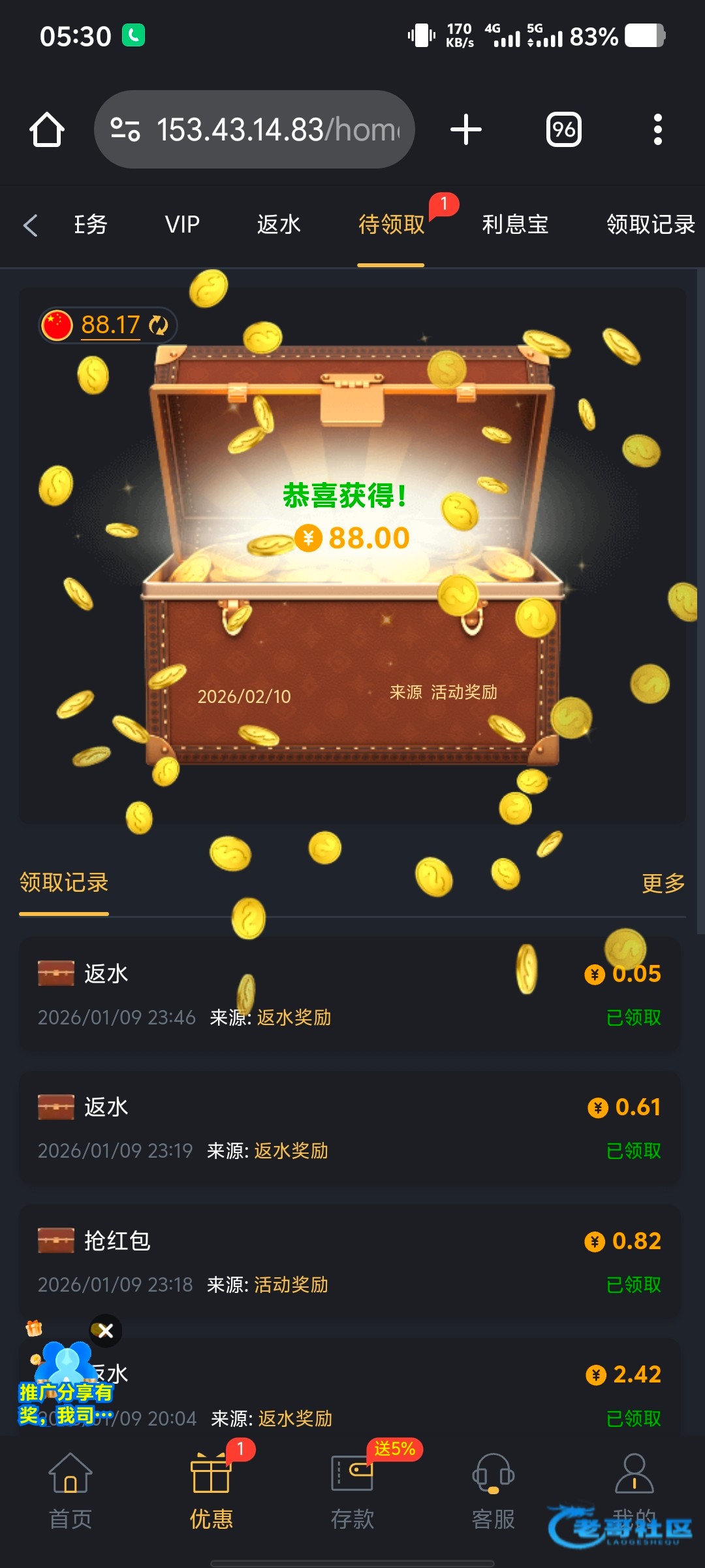 这大黑台我领了两笔88了