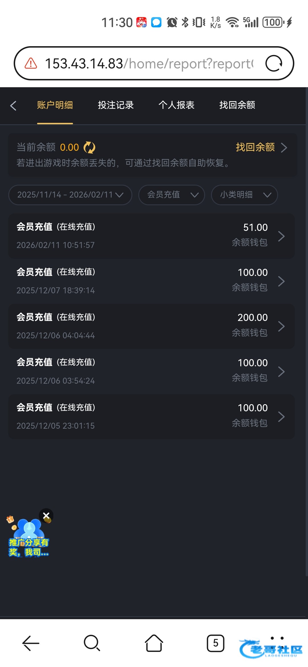 充30领了18提了110到了