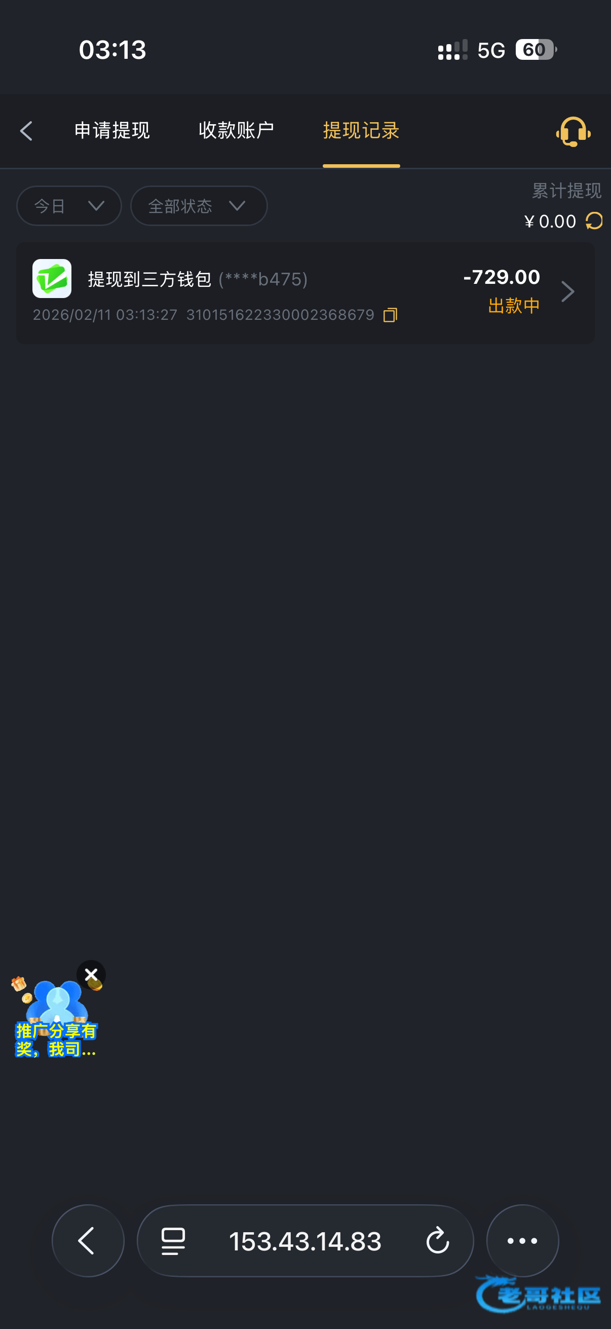 大黑台竟然给我出款了190