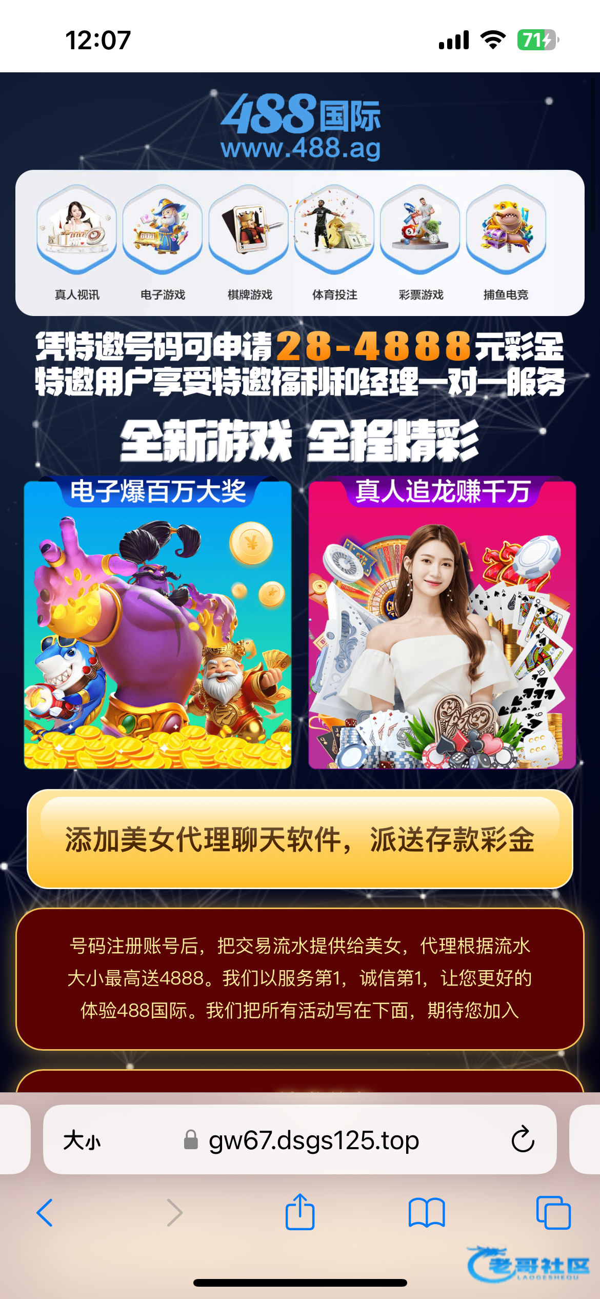 接到电话进的特邀网站,里面没有代理联系方式去问客服,客服说我是老哥网来的。笑死人了,像这种台大家别充值玩,大额包黑
