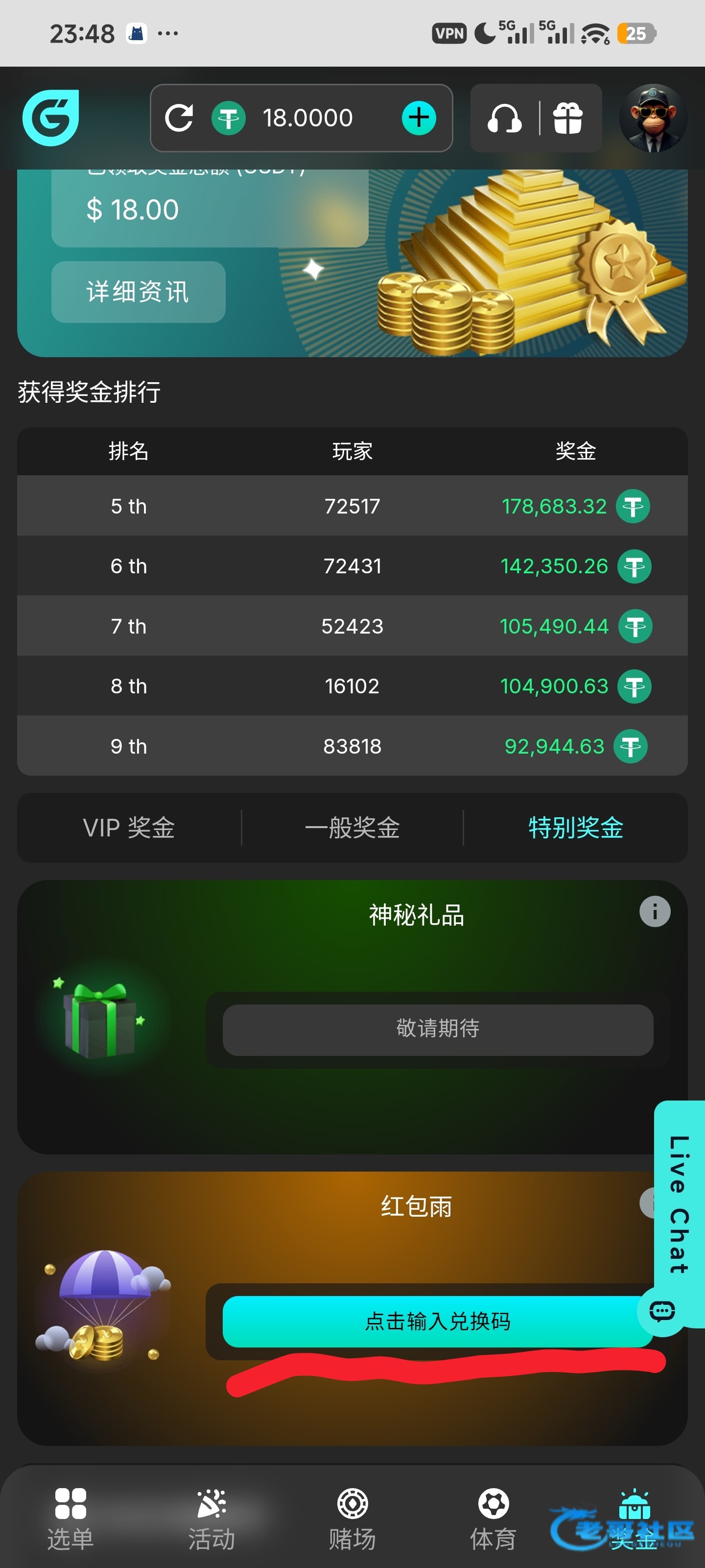 获得兑换码,注册点头像,下图兑换
