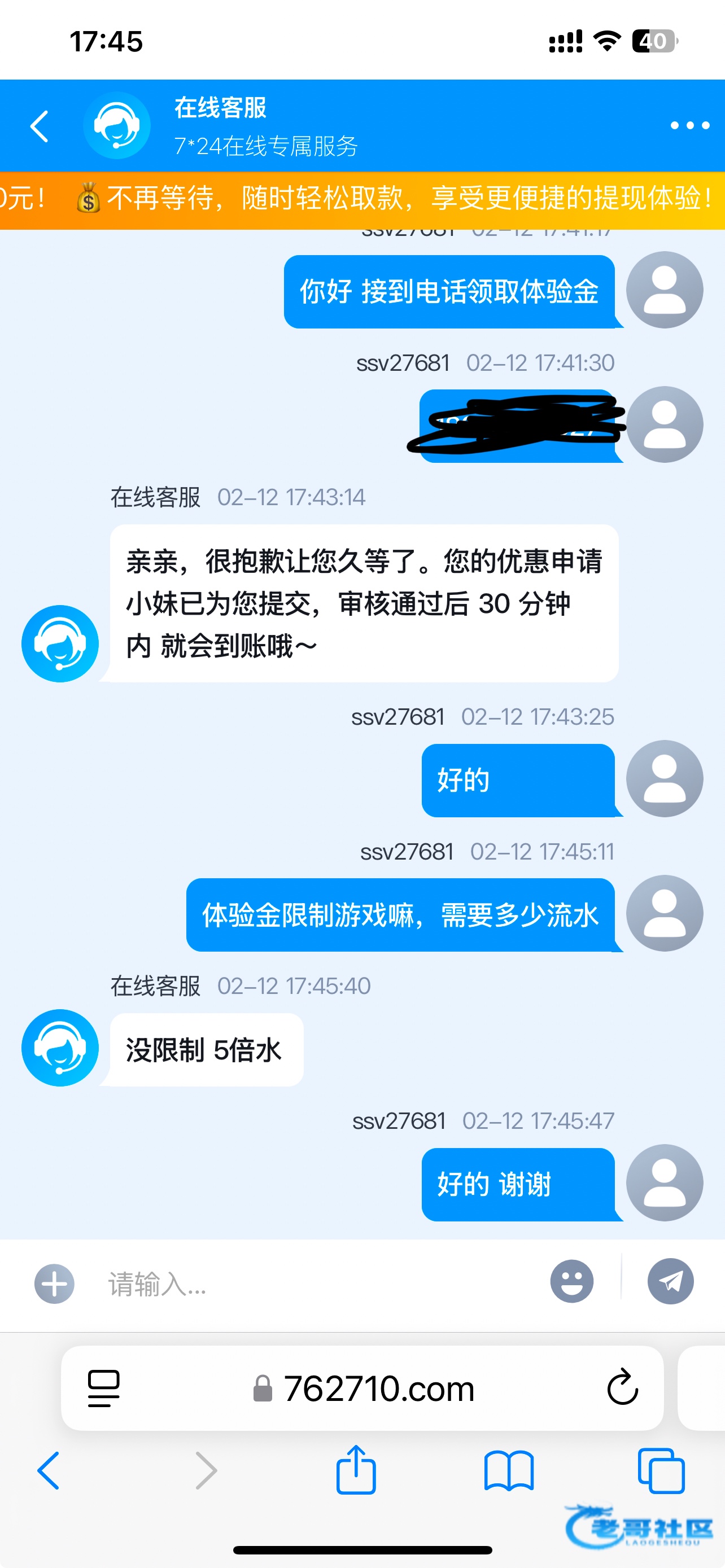 我是接到电话,绑定提现账号,然后联系在线客服送了58.不限制游戏五倍流水,