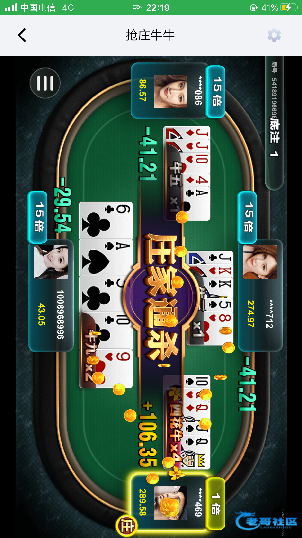 上号送了8块钱 拉电子打到93 一百才能提 我说去牛牛小额磨到100提现算了 进去一把没赢 好不容易给了个牛9还被4花牛杀了 93打不到100 现在真不像以前了 现在吃相太难看了 还是得继续我的白嫖之路 打不过狗庄的现在
