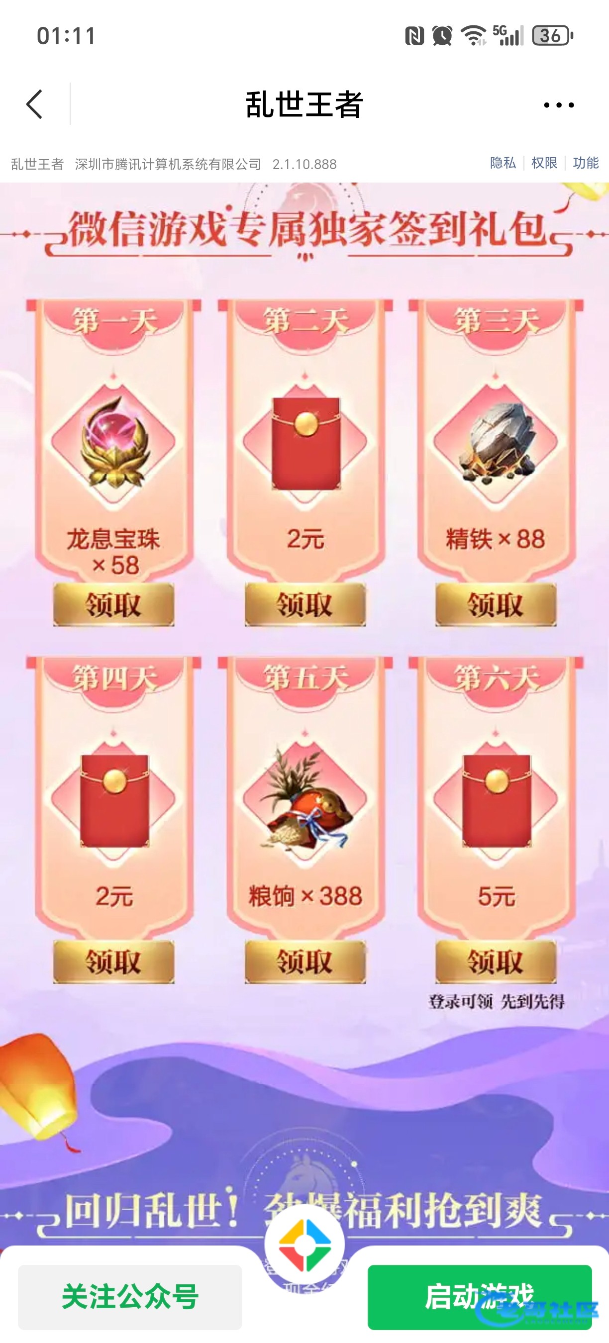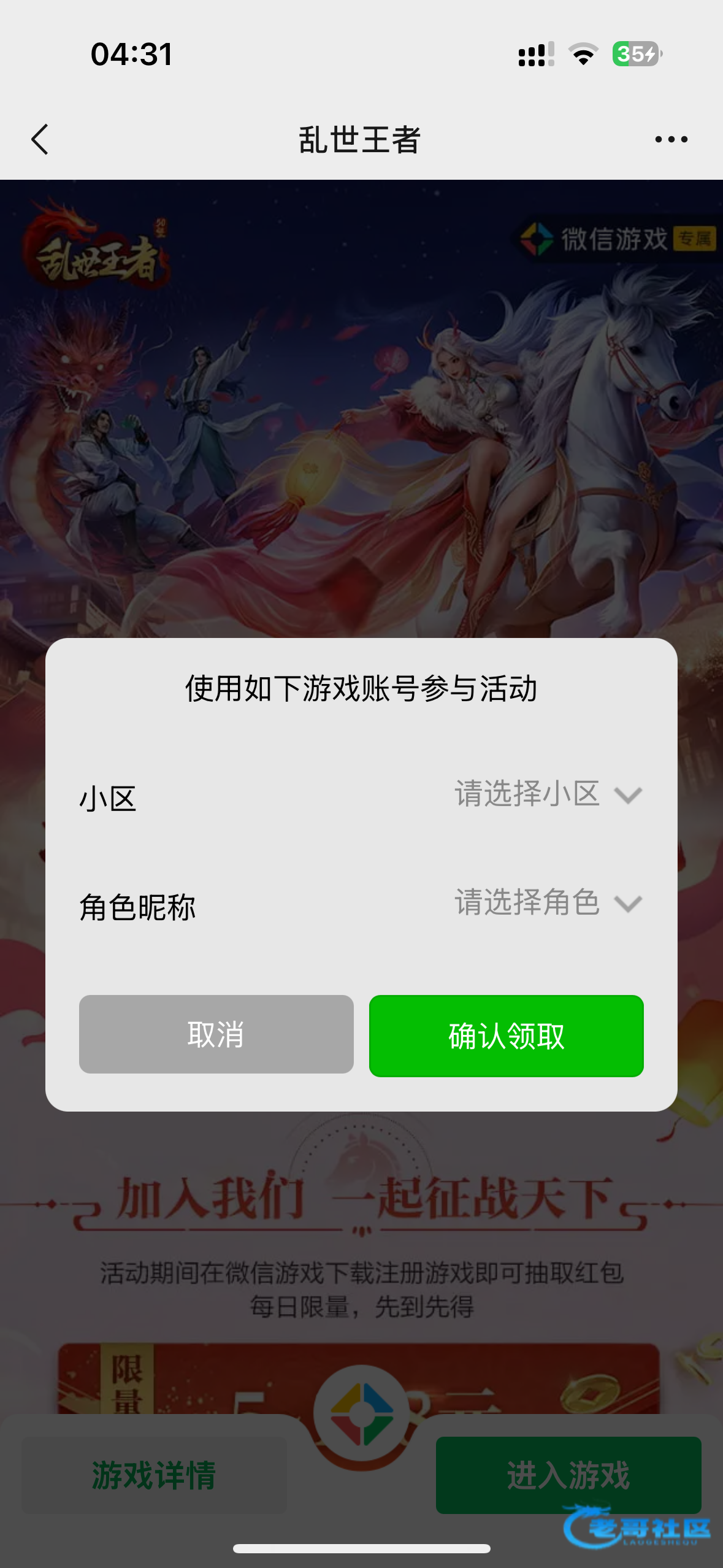 领到了,这傻逼游戏进去的区是476,划到476我找半天都没看到绑定角色,没想到下面还有一个476,一个微信476区,一个互通476,把我整笑了