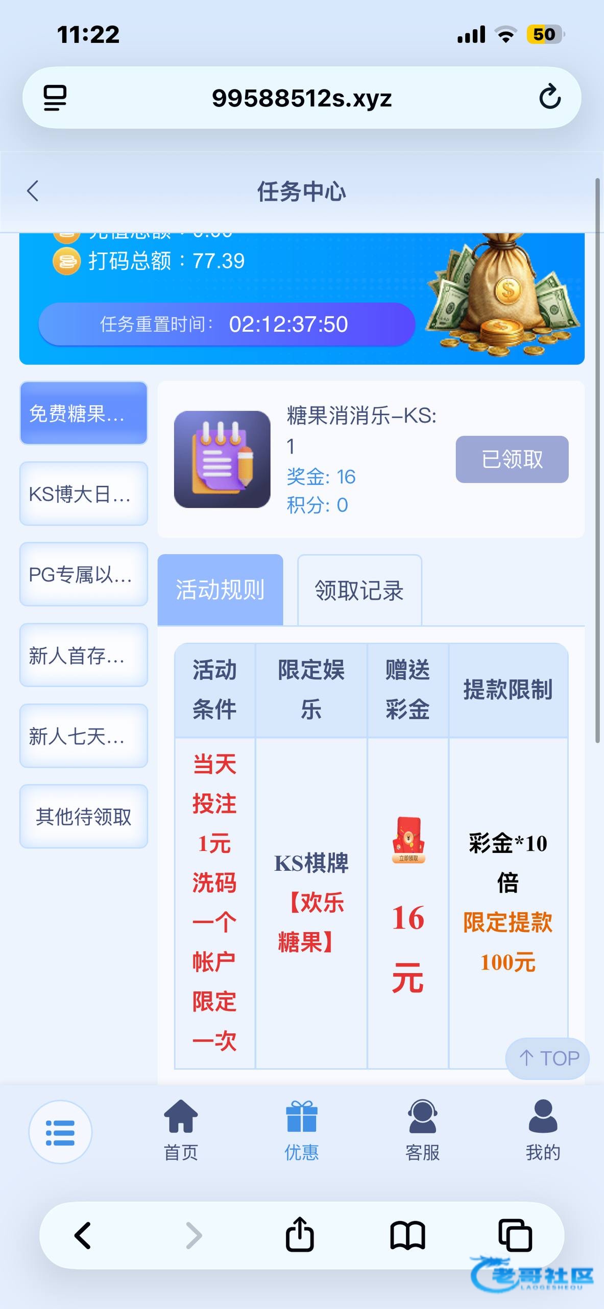 拿返水投1块钱就能领16元,只能打欢乐糖果,一注两块有水,提了100,梦想有号的可以去搞一波