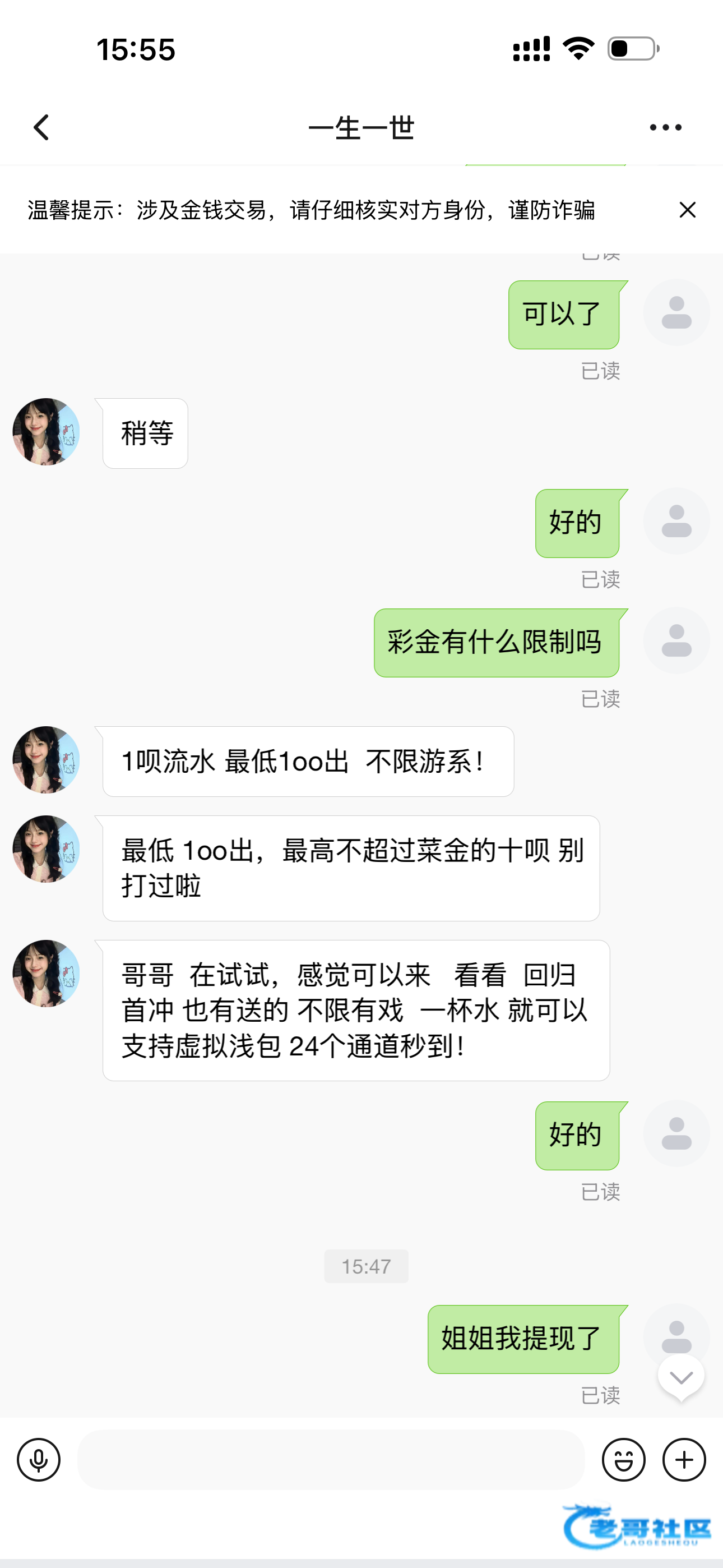 小李锅 ▶ 玩玩而已 他给我打了好几次电话问我加客服没有 1月前