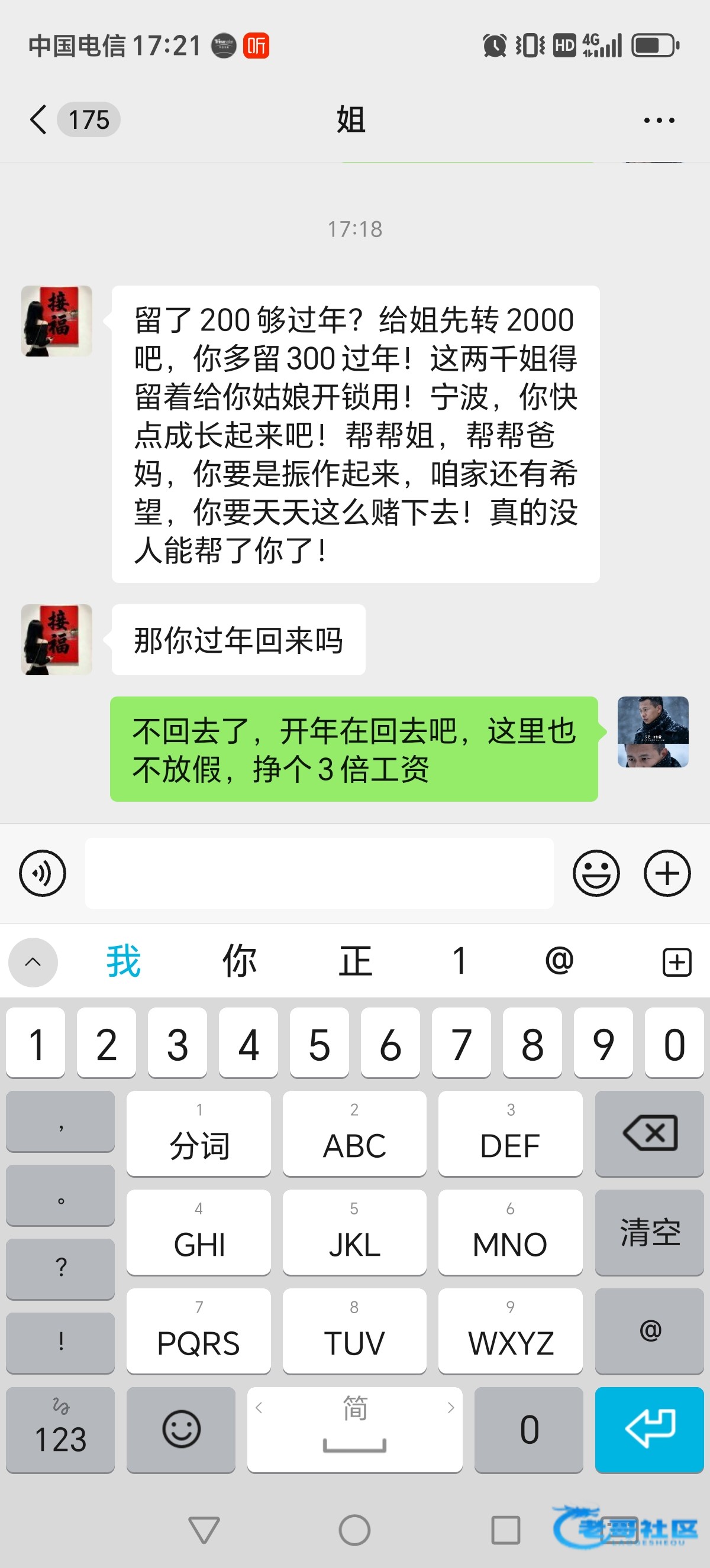 这个是欠了3个月,带上这个月的,一共2400,前几个月的工资都送给狗庄了,也怪自己赢了也不下,总是想一步上岸,哎,慢慢还吧,房东很好一直也没说什么,过年了,还是要先给人家的