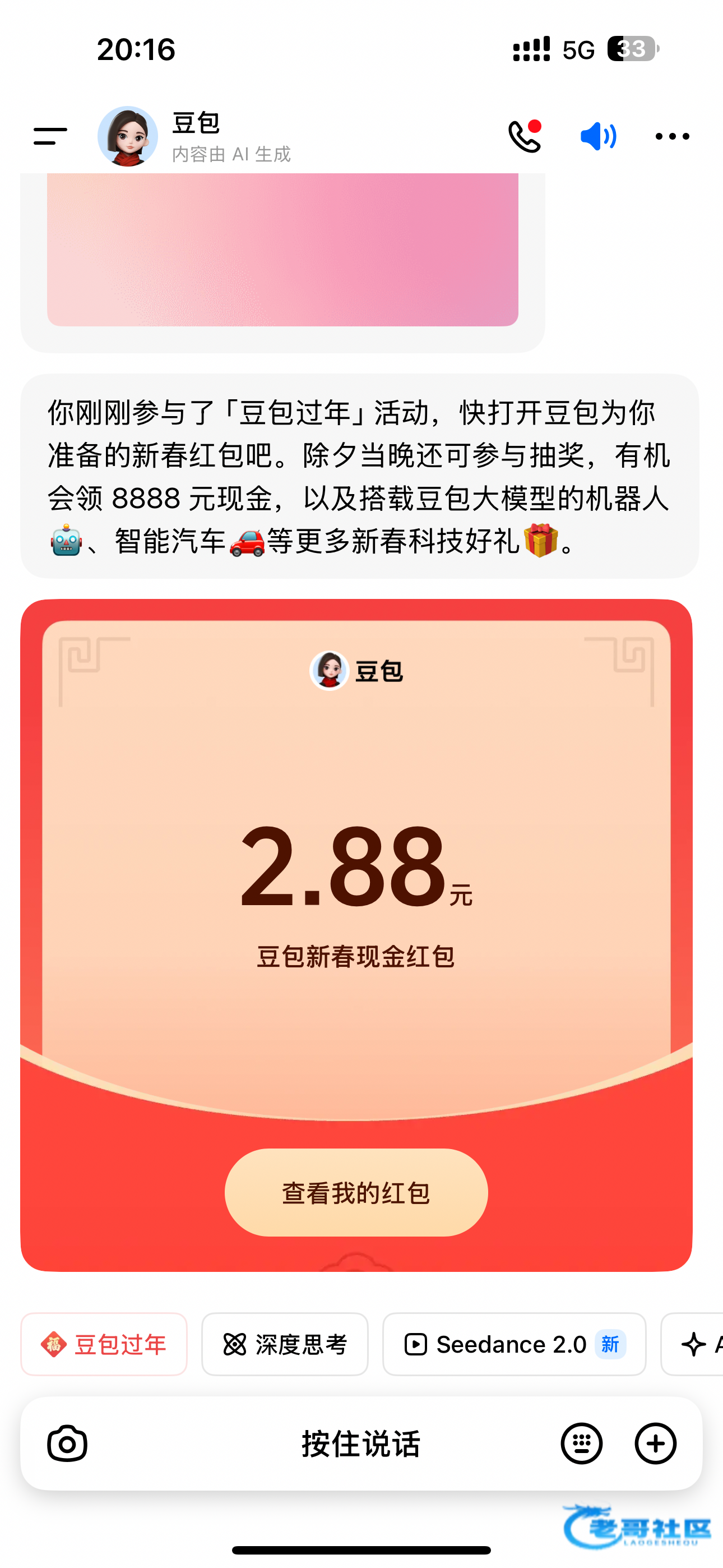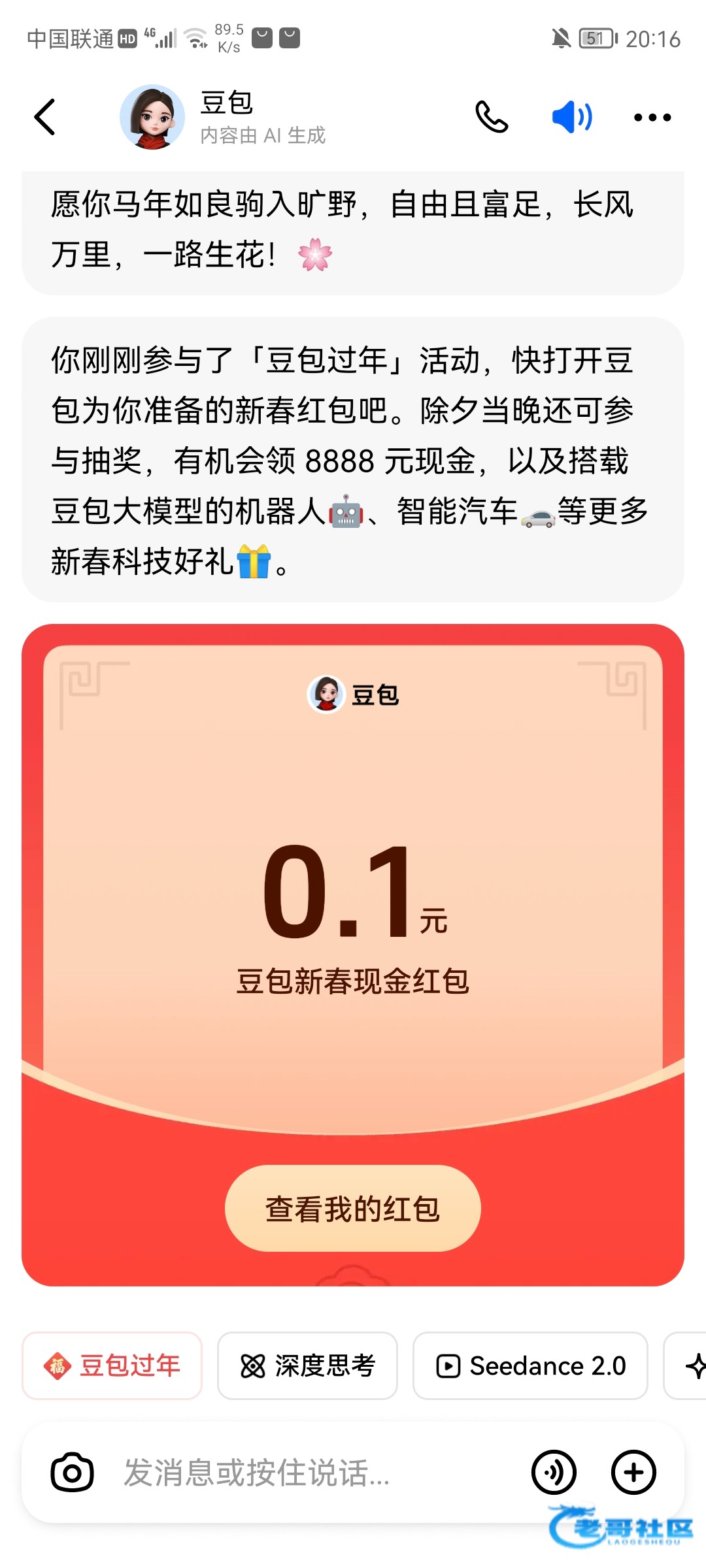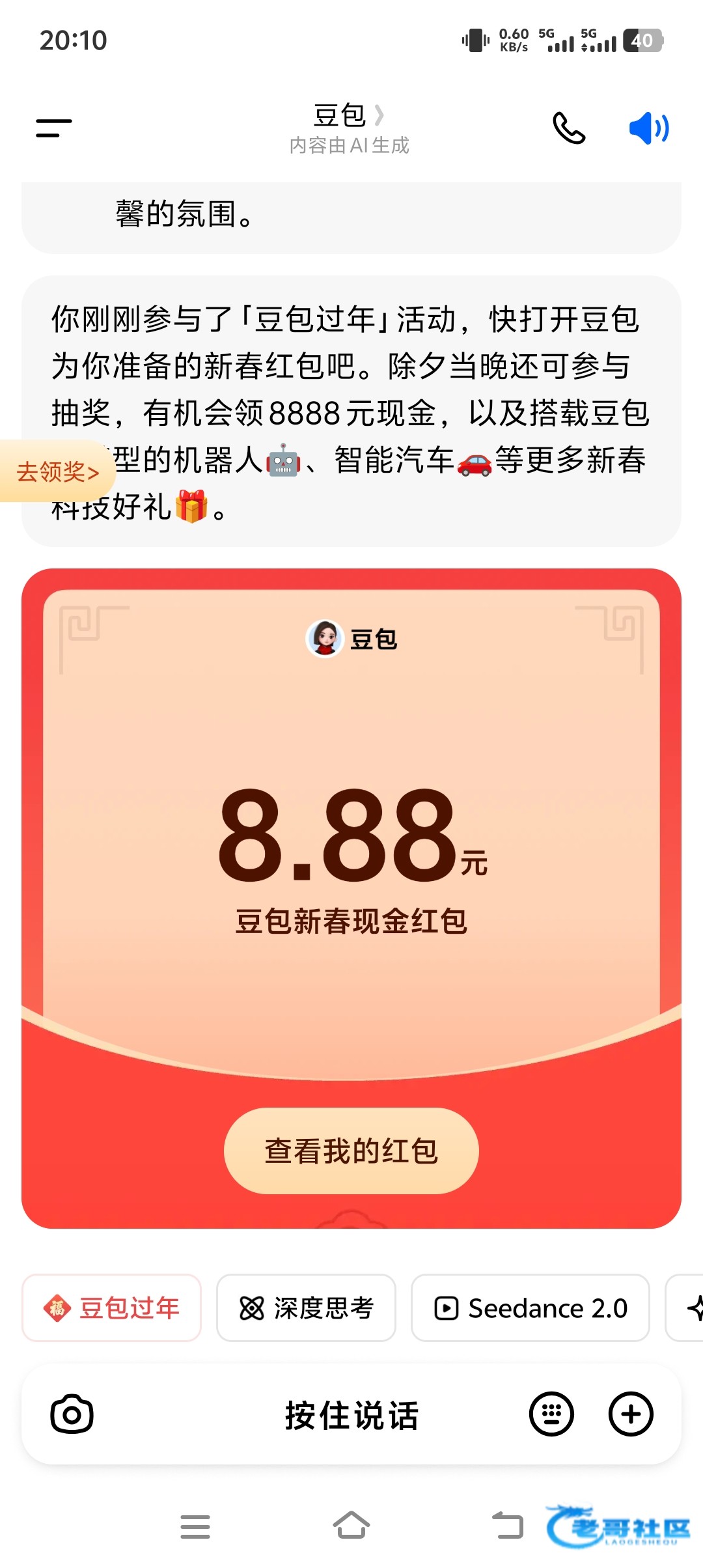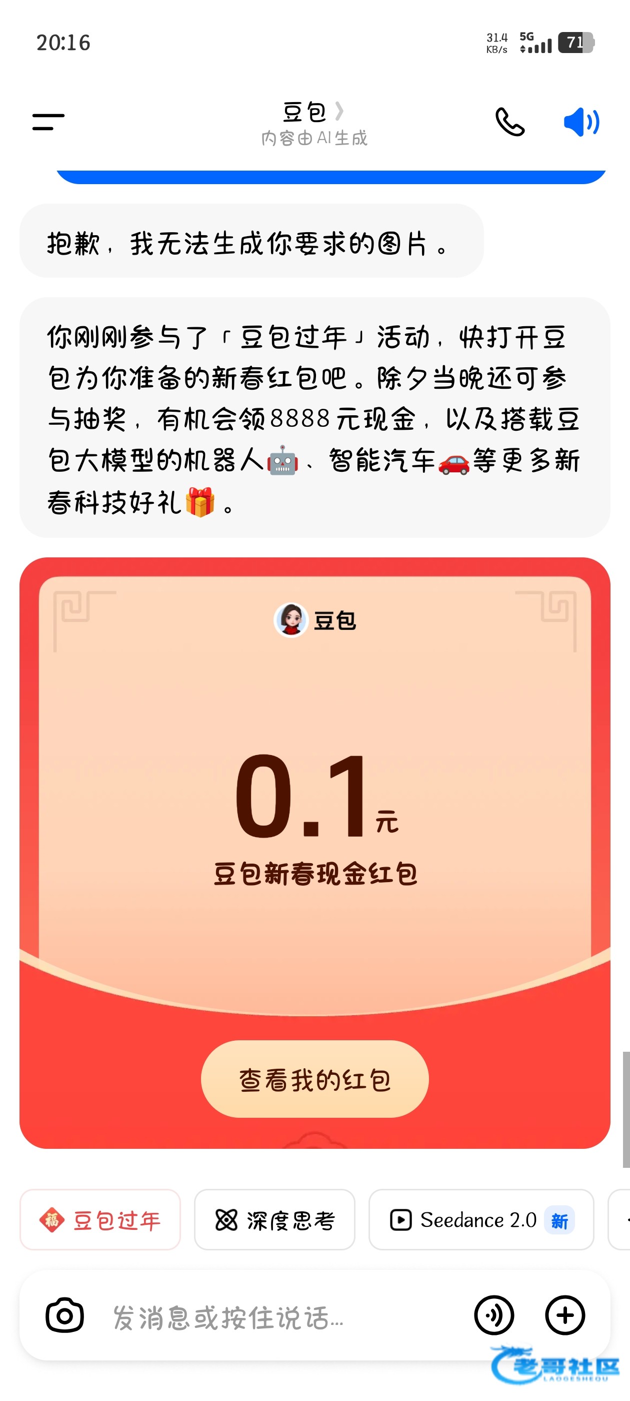 豆包app 左下角 “豆包过年”随便生成个图片能抽如果没有就更新一下最高8888