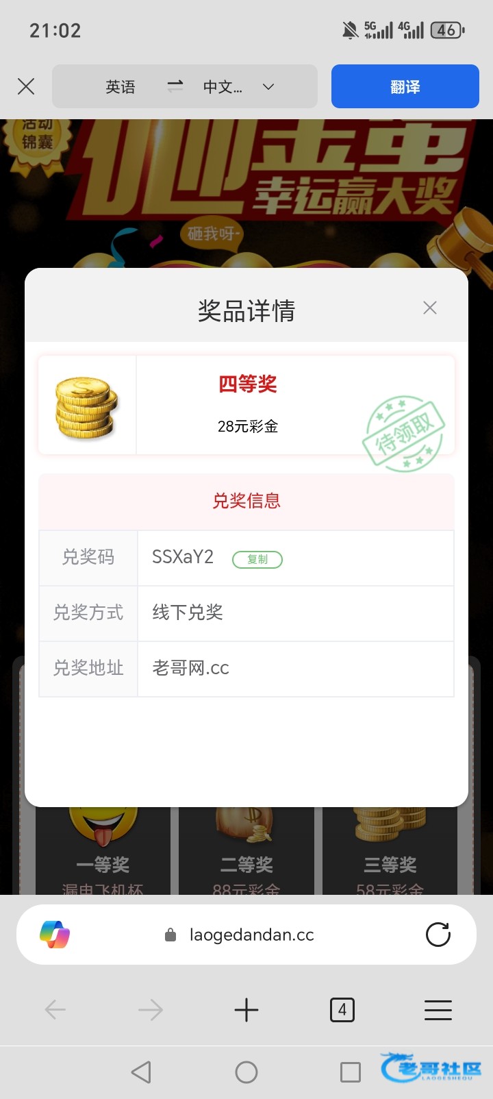 金币兑换的彩金已到,老哥牛逼