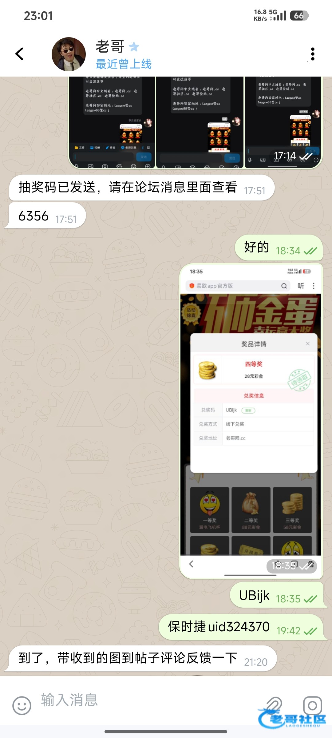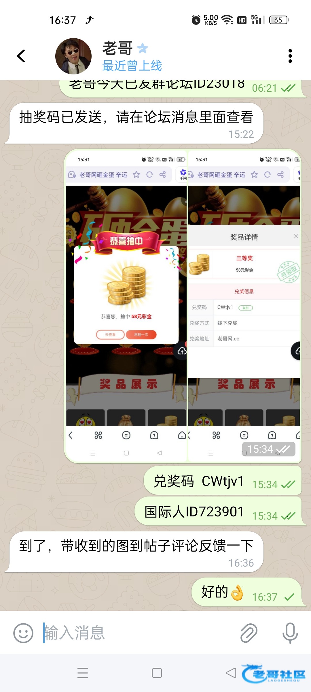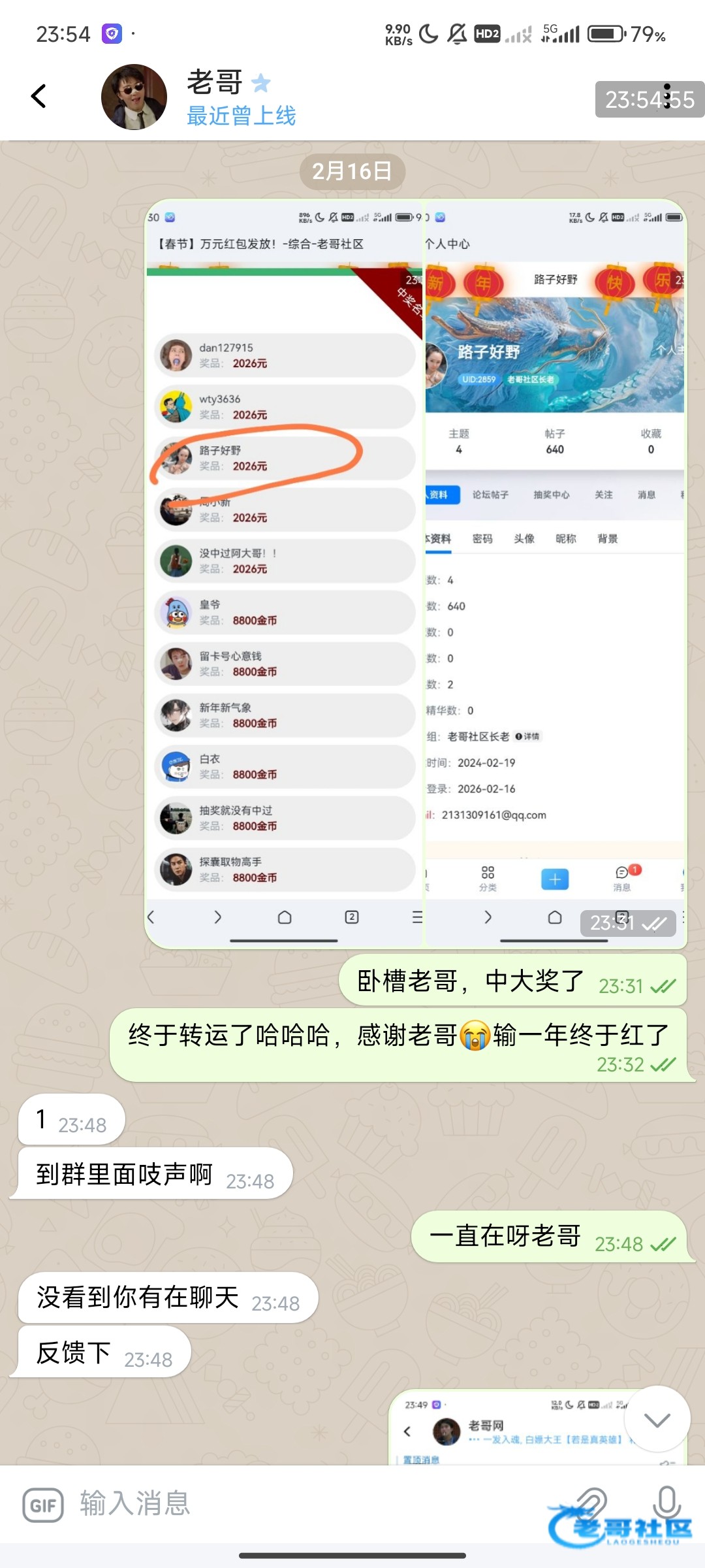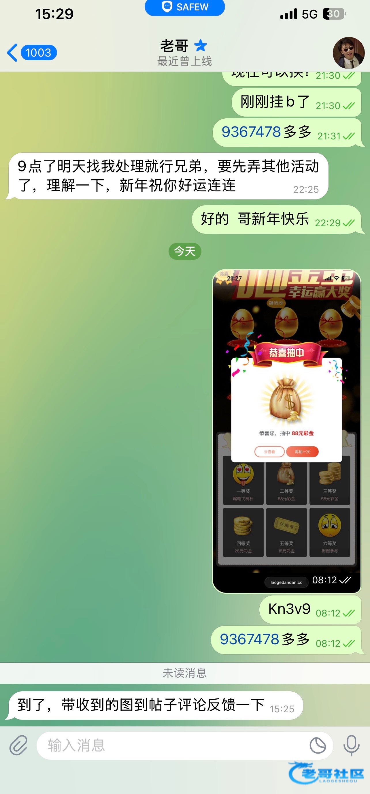 感谢老哥中奖