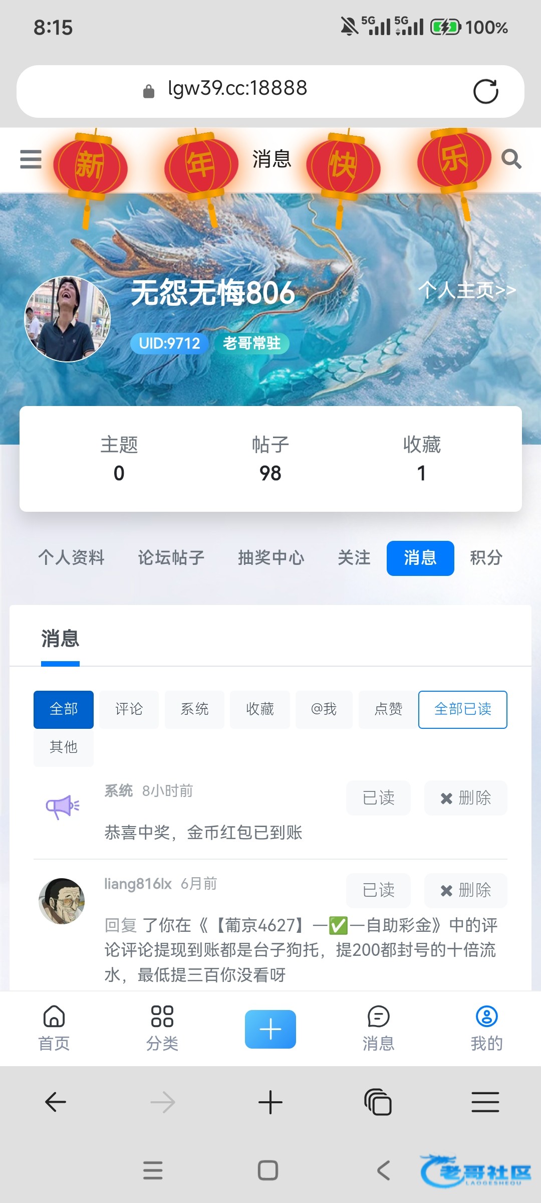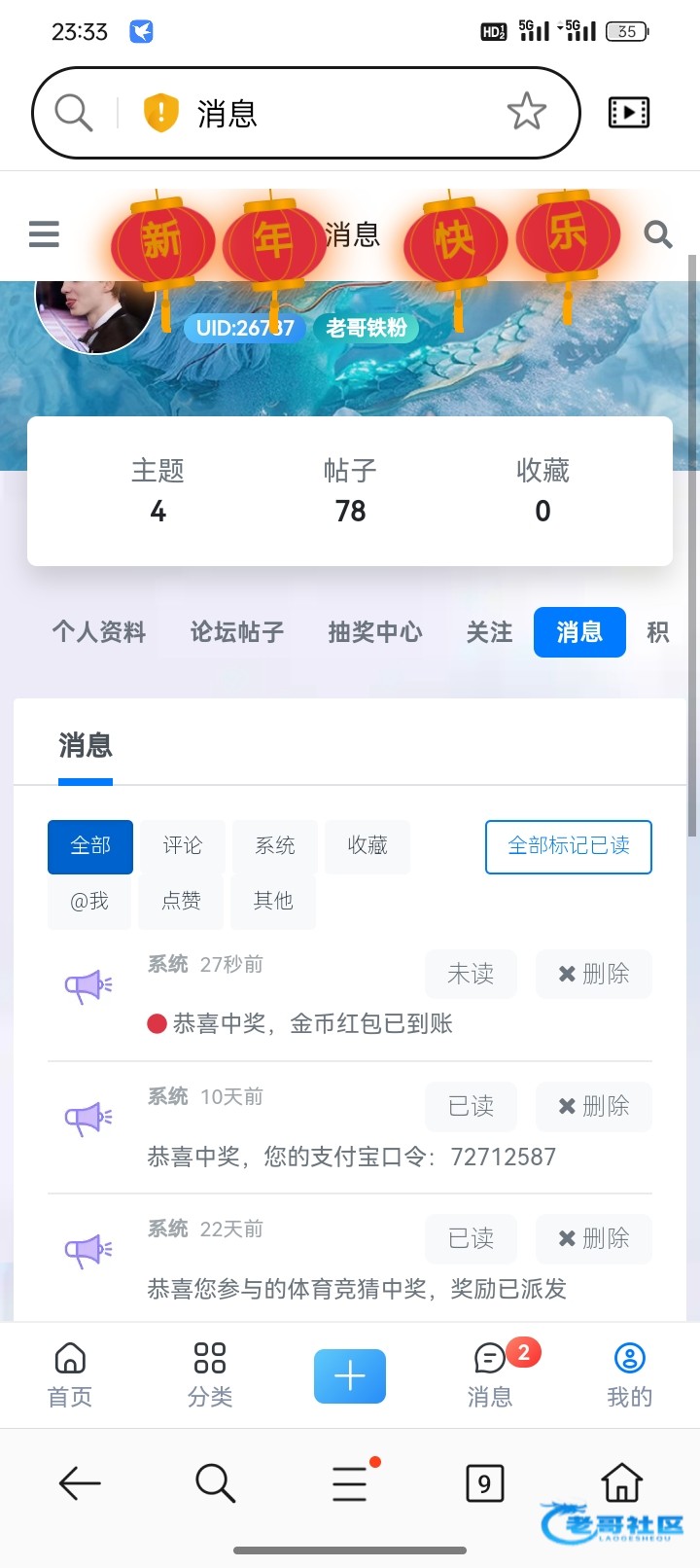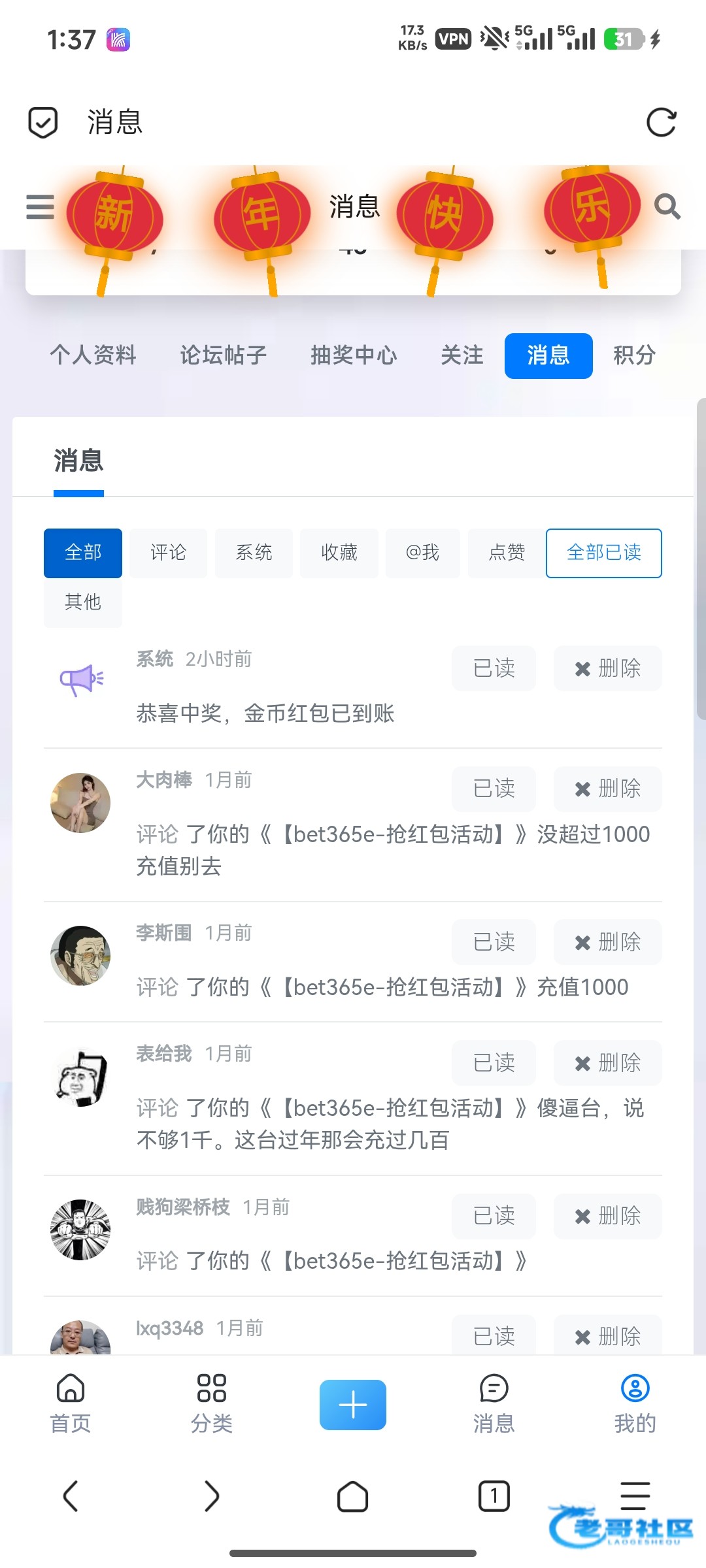 感谢老哥的新年活动 祝老哥天天开心