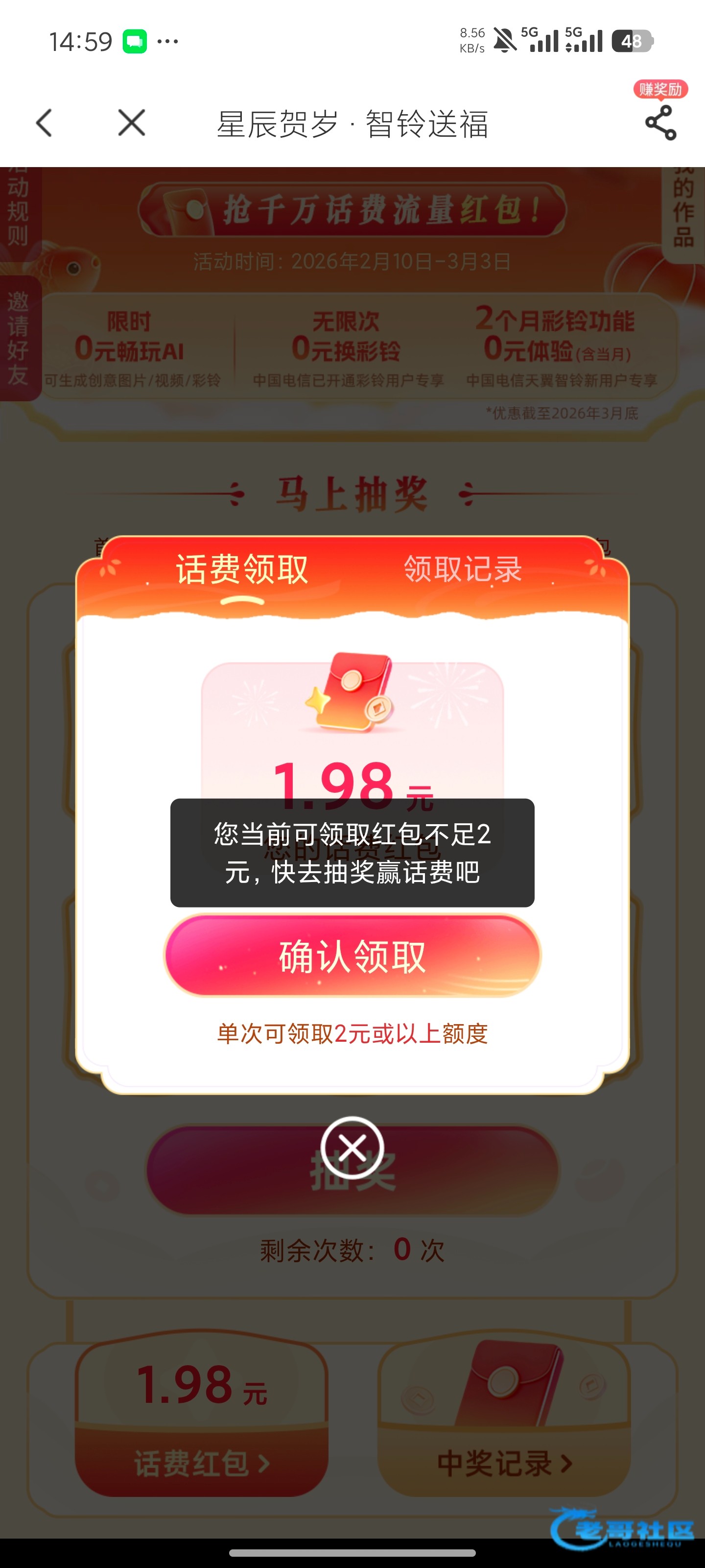 感谢2.6话费