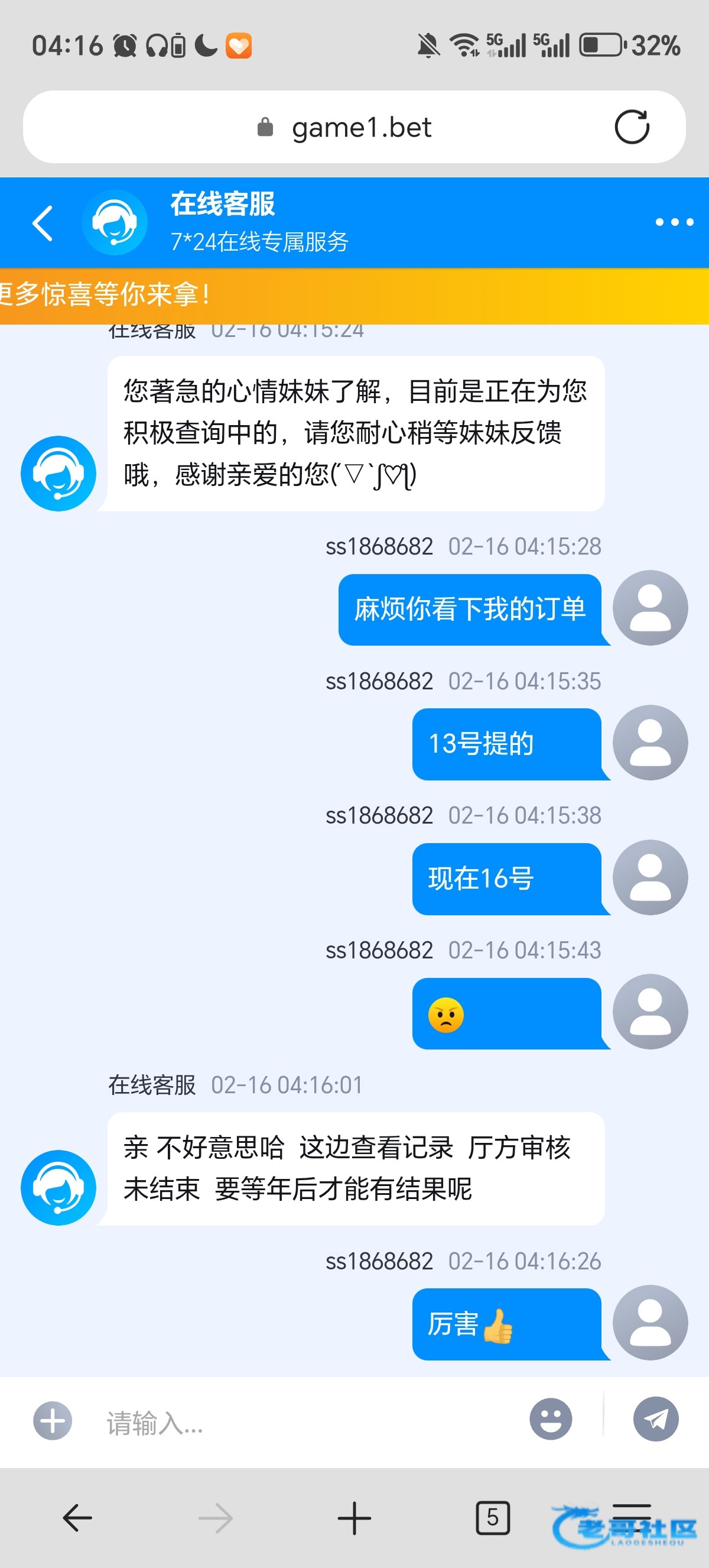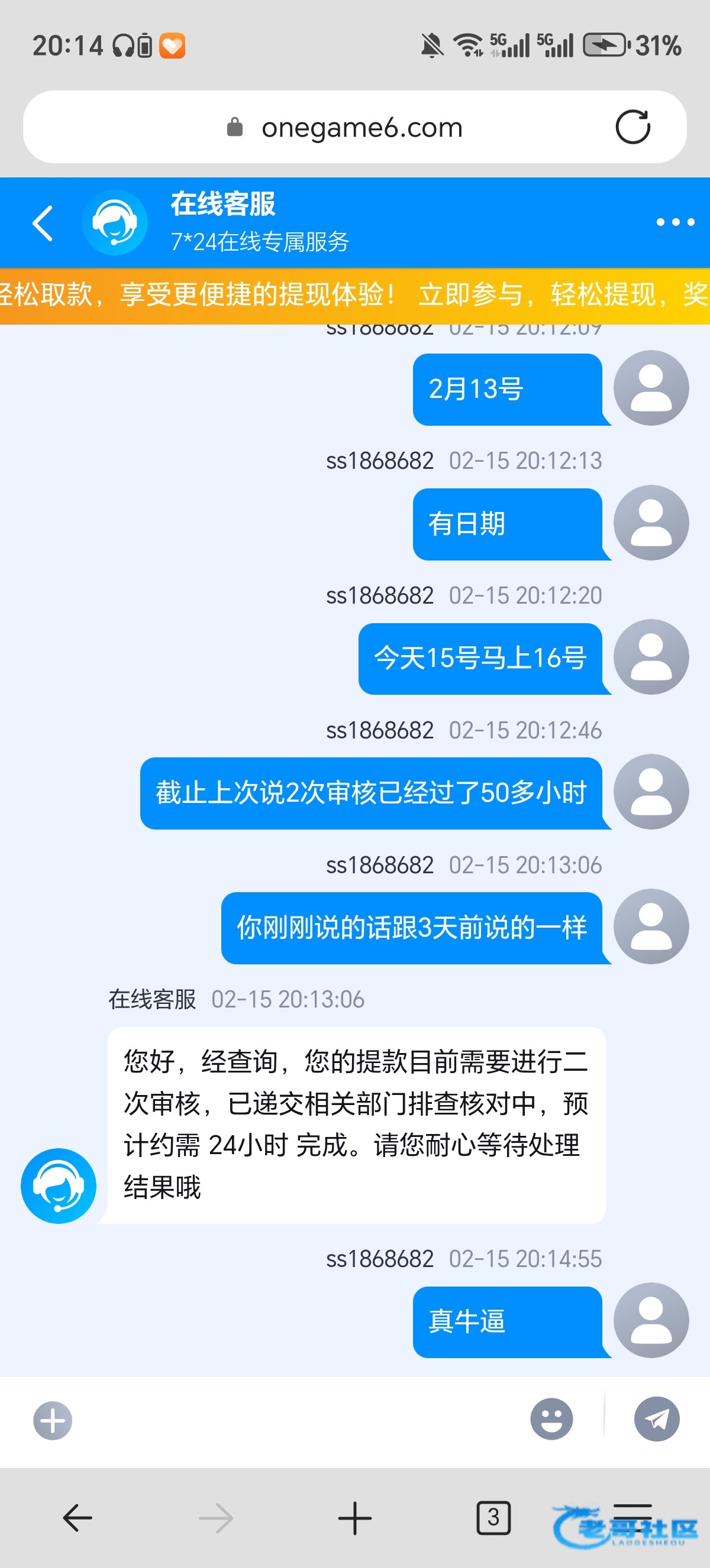 我早发帖了。这逼客服吊的很,无限审核