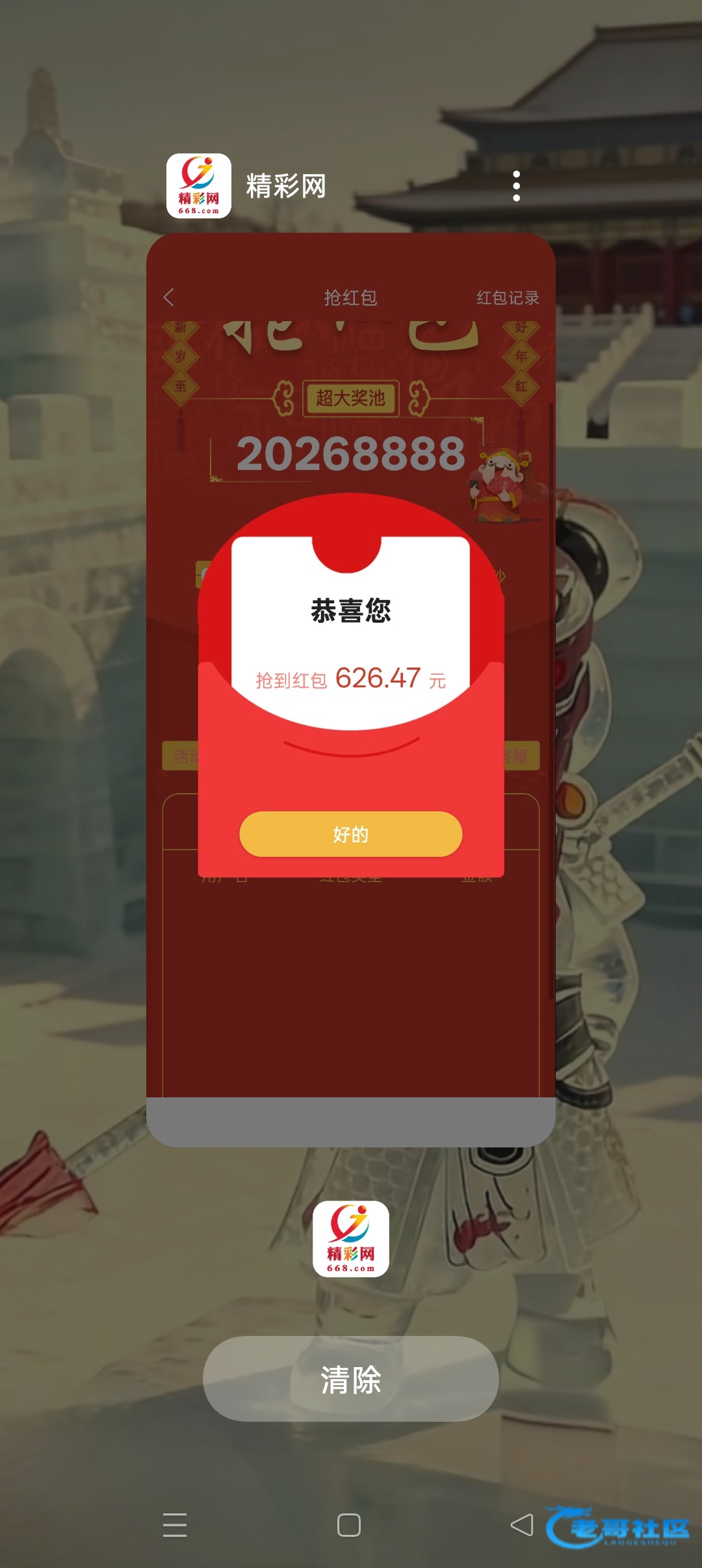 今天668 8点红包抢个大的