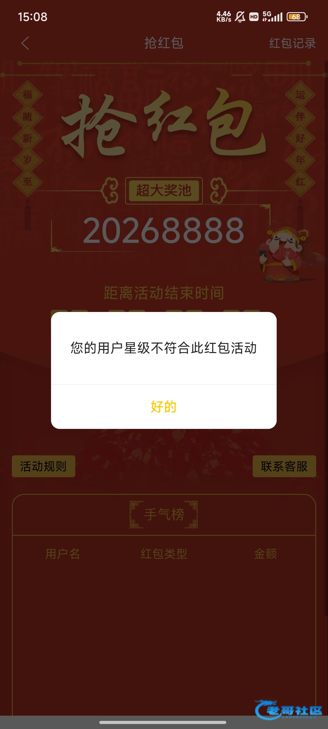 这个傻逼1056好不容易抢到一次豹子说不活跃不给送