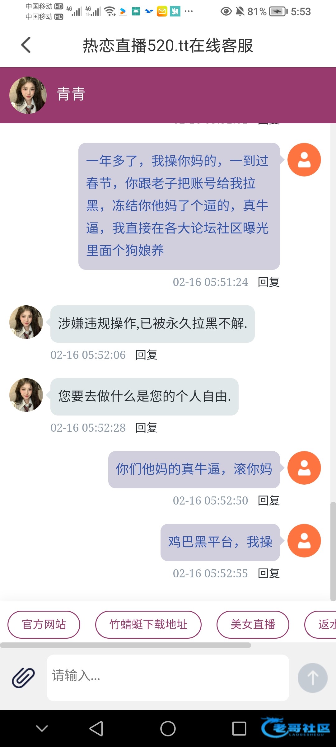 妈了个逼的,玩了一年多了,我操他妈了个逼的,一到过春节把老子找个理由给我拉黑,永久冻结了,我操他妈的,这他妈的什么鸡巴垃圾平台