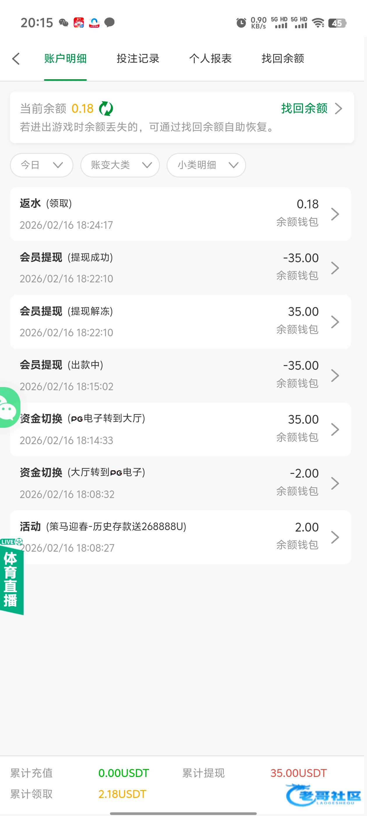 出款情况:自测(