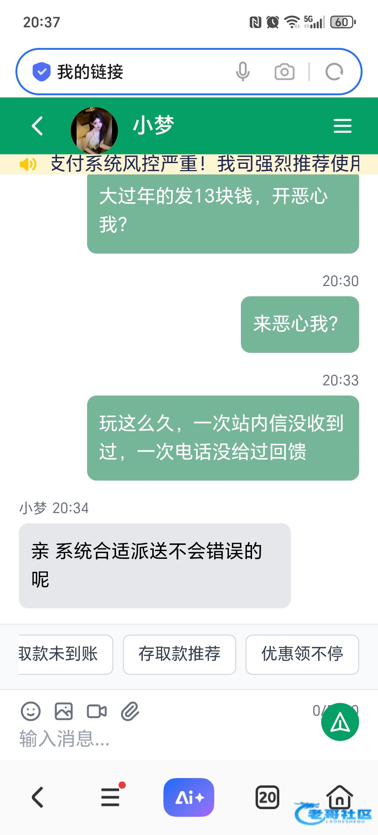 大过年的,真给我整乐了,累计存款47万,新年回馈13元,好大的格局,各位朋友千万别去玩了