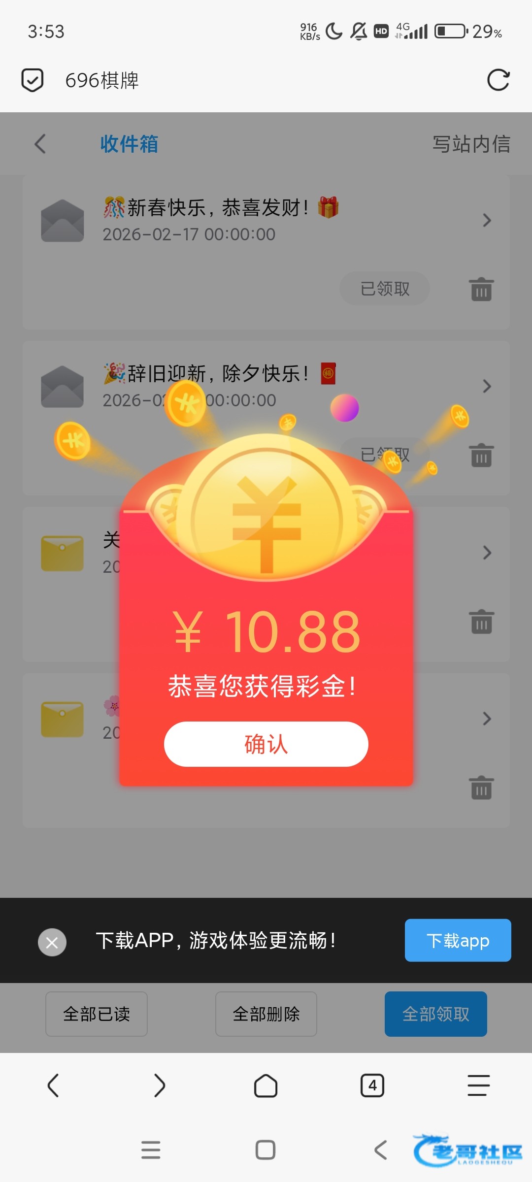 网址696.tc 今天5波红包,在邮件领取,24小时过期,记得领取