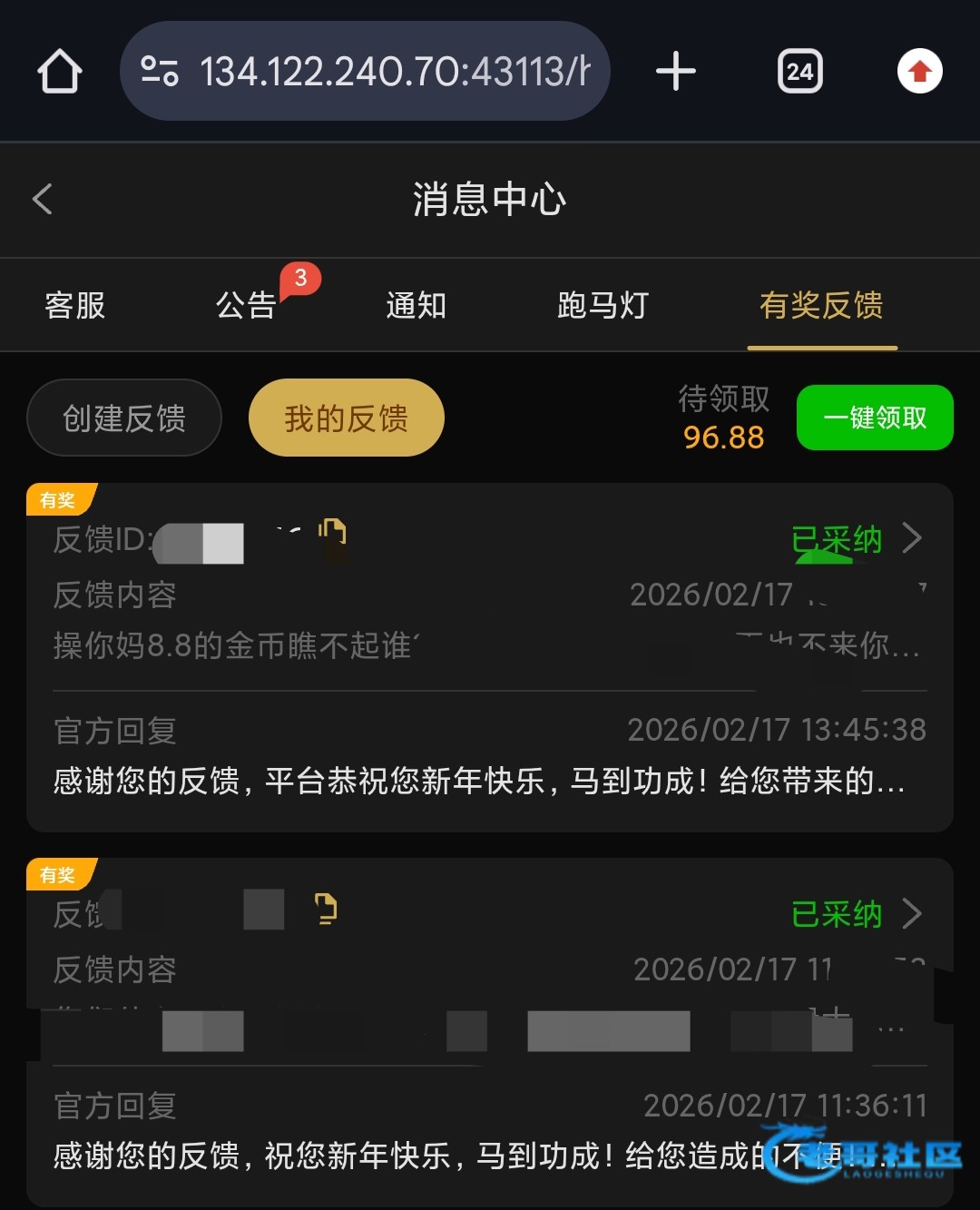1158平台杀的雅痞那天输了很多结果大年三十和今天除夕一分彩金都没送我就反馈给了8.8!我反手就一顿骂他们草他们,结果送了88笑死我了,我还是没领,我继续骂。