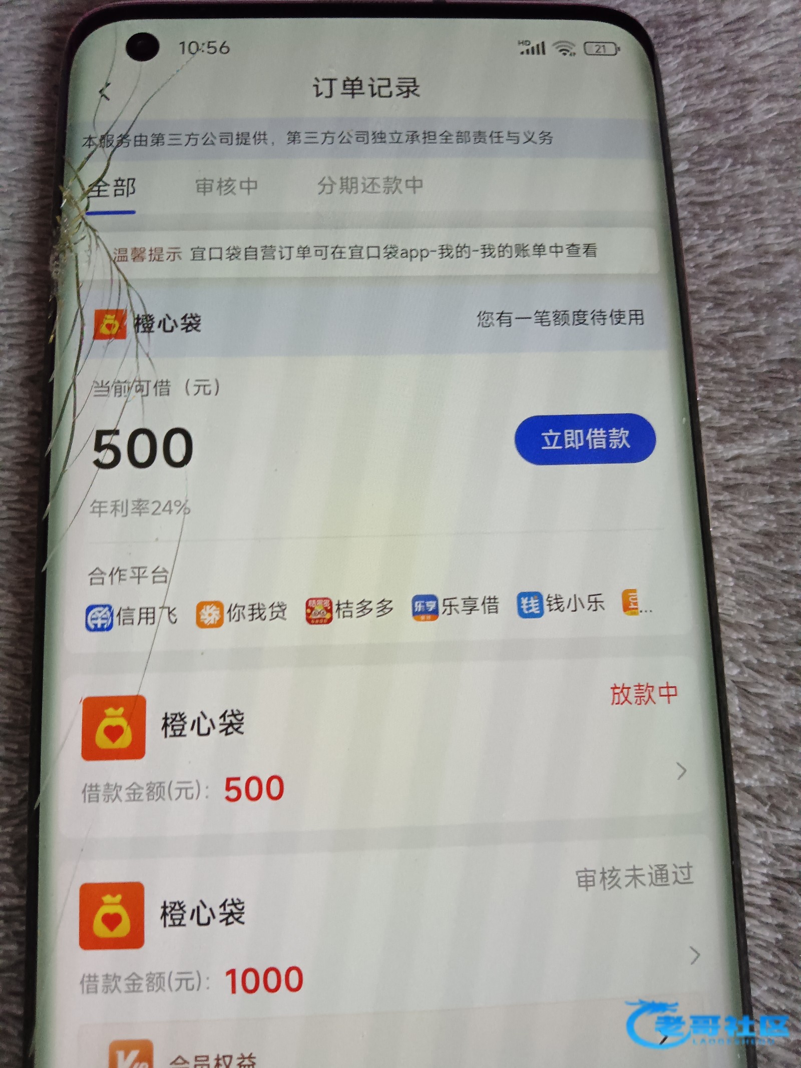 之也 ▶ 之也 第二笔橙心袋18号申请,2月21号到账了,间隔5秒就划扣了第一期宜口袋还款账单,也就是说第一笔贷款2月20号是还款日,逾期一天的情况下,申请三天的橙心袋到账且划扣,银行卡是非柜,是如何做到的,非柜也能划扣???通用支付-天津明东华融资担保有限责…[em_3] 1月前