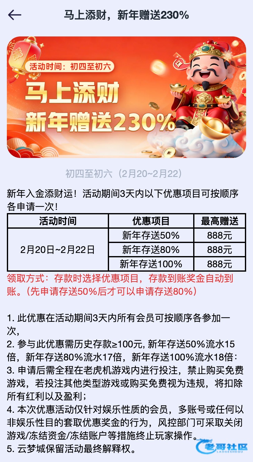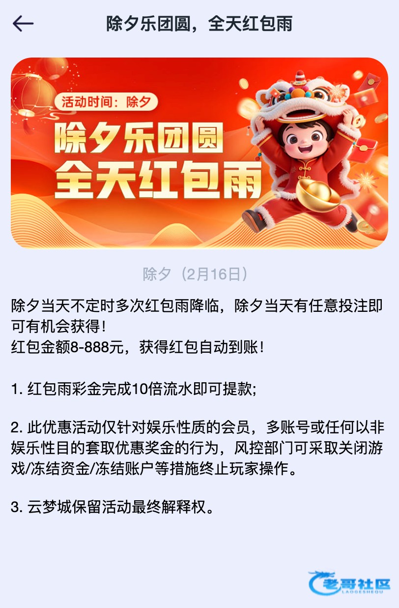 【云梦城】随机抽100份好运彩金!