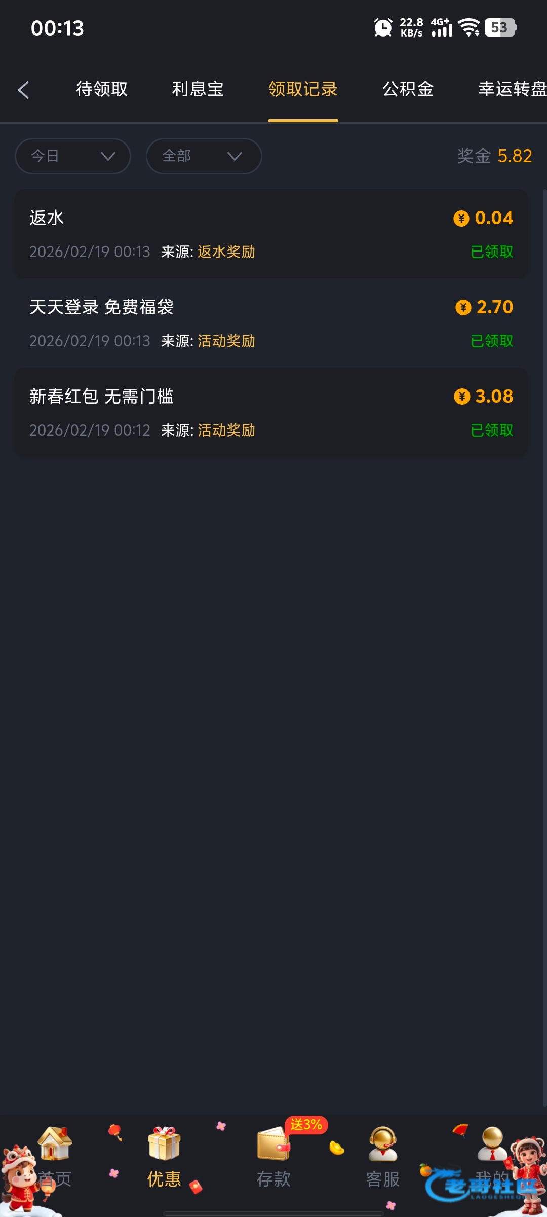 领的彩金出款了