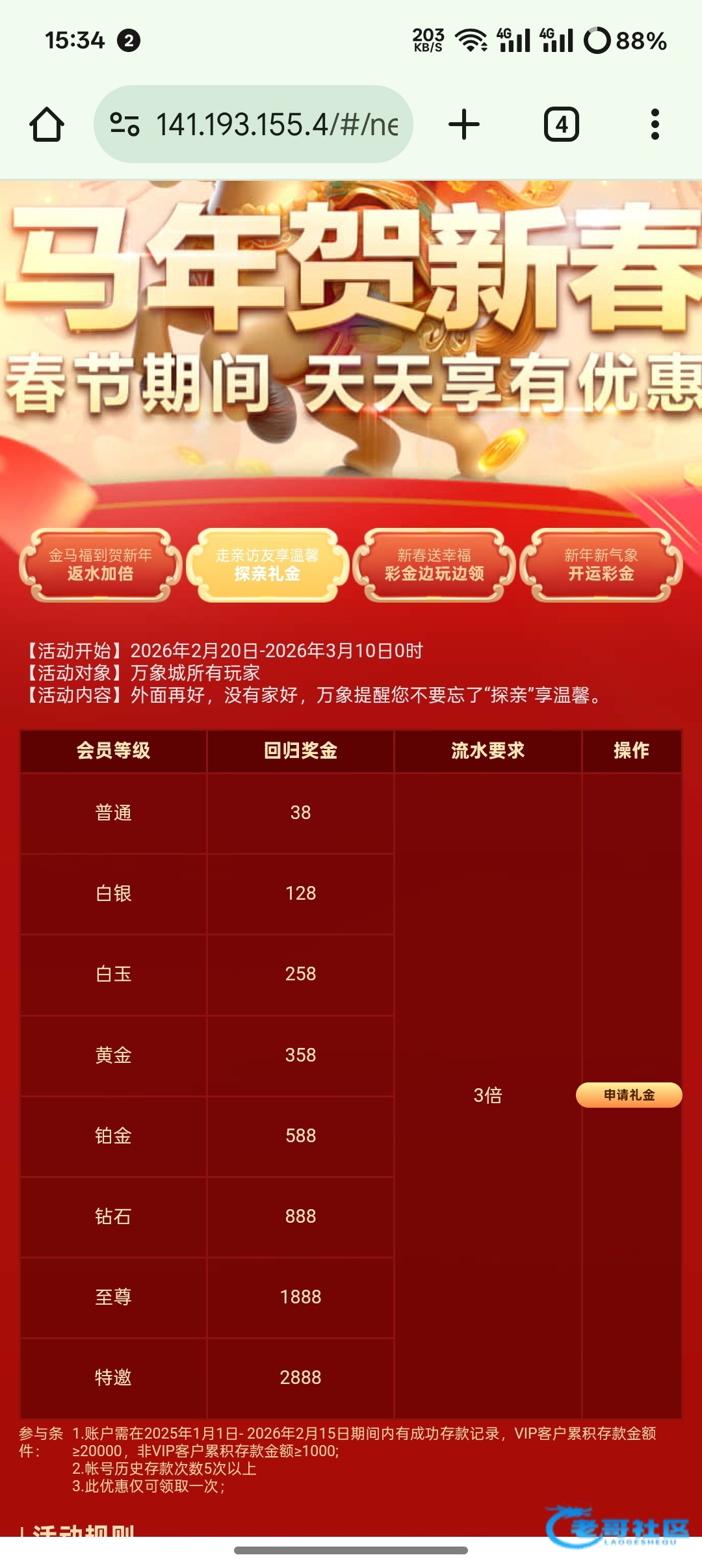 要历史存款,没有存的无视即可,好像要存5次 我领到了38链接https://148.66.61.150:1056/dh/