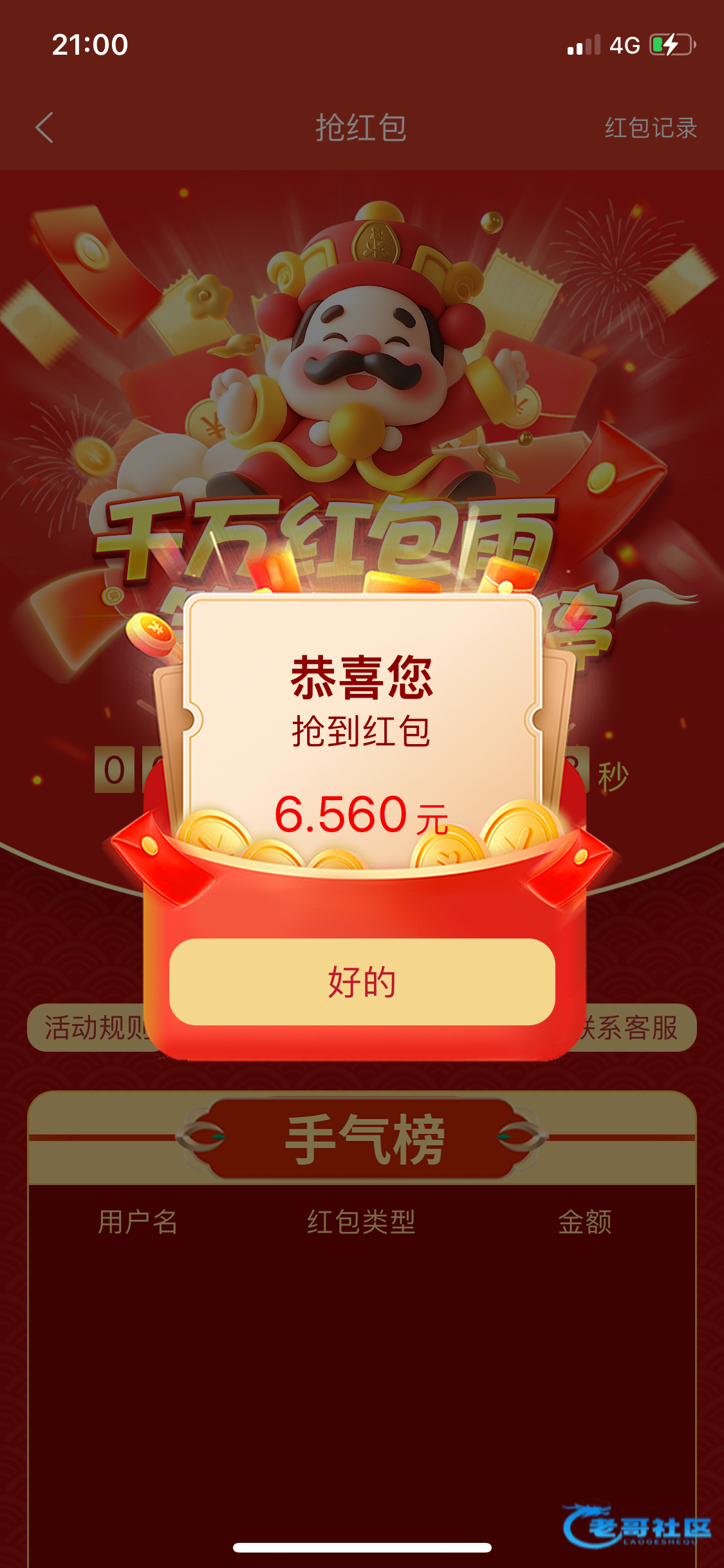 忘记抢了,,这几天应该损失几百的红包了,过年天天打麻将抢了两个50多的包1036