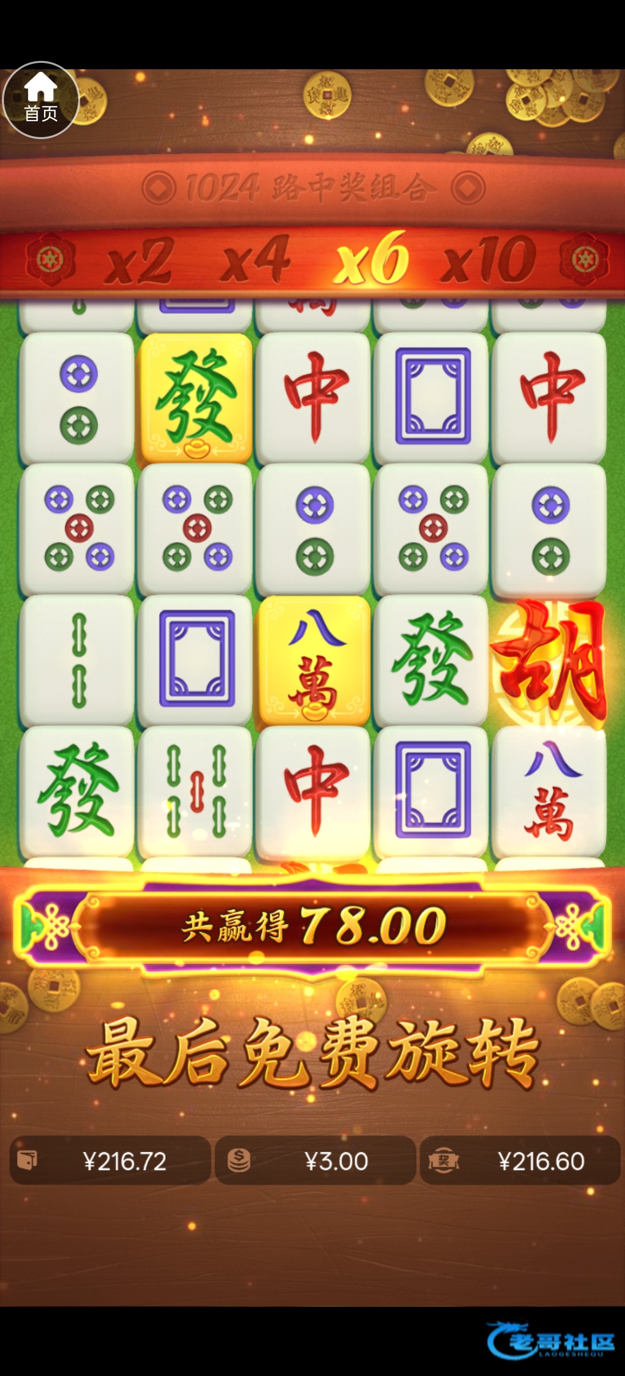 我都是拉1块2块,昨天1块进胡,免中免中免一共36次免费给65倍