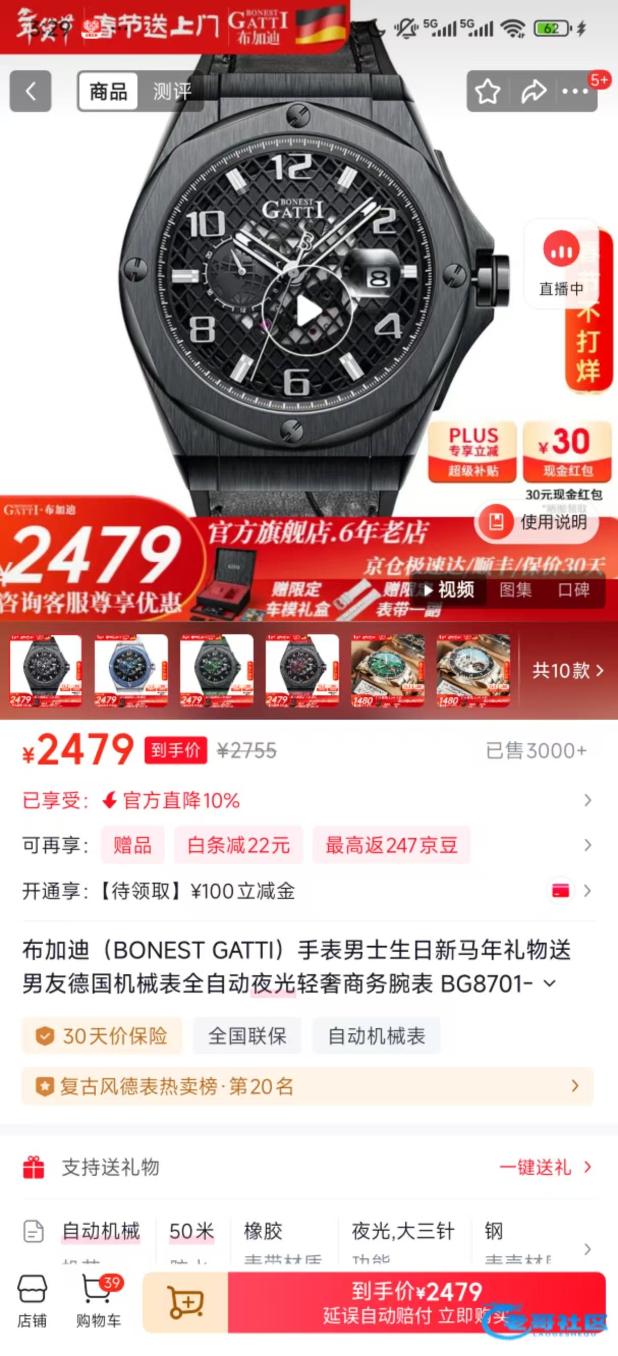 不理解你们张口就来什么概念。我肯定是了解过价格才去买的。什么几十块钱的手表。。拼多多百亿补贴都要1600