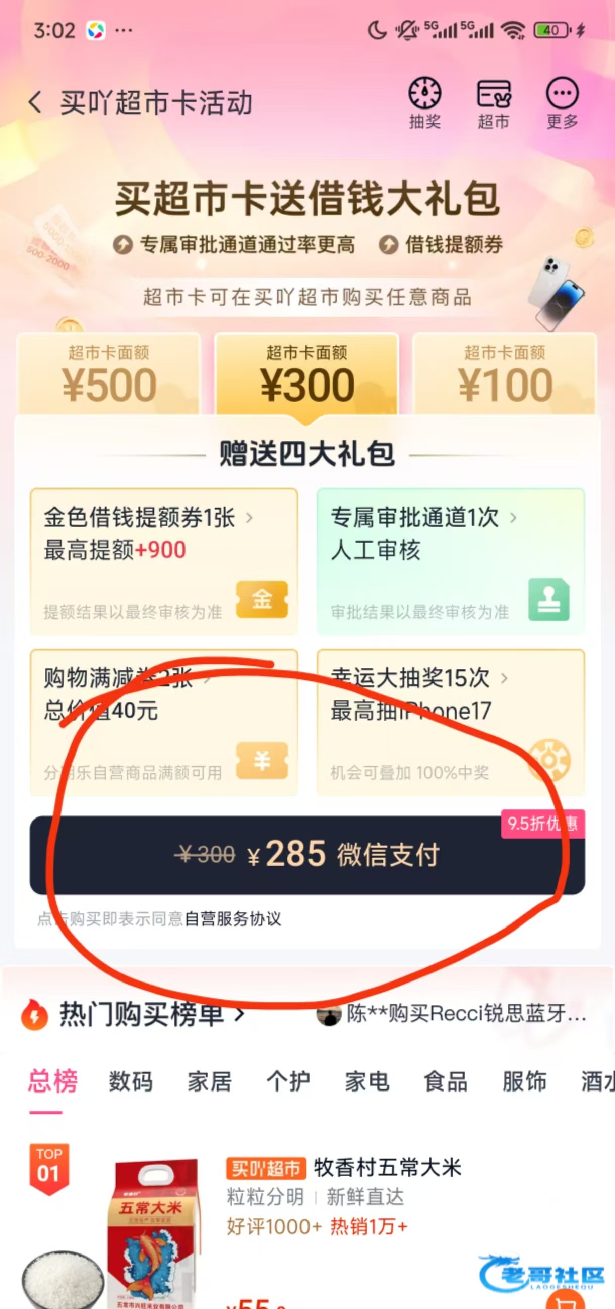 我相信有好多老哥分期乐都有额度,但是借款失败。我也是有5000额度280都不给借出来,但是我无意间发现了这个超市金可以用先用后付。老哥门可以试试看。这个超市金可以买手机手表变现,我买了这个可以卖1400这样。我只有2000额度。不然高低整个好手机。手表我买来自己带了。就当送自己的生日礼物了