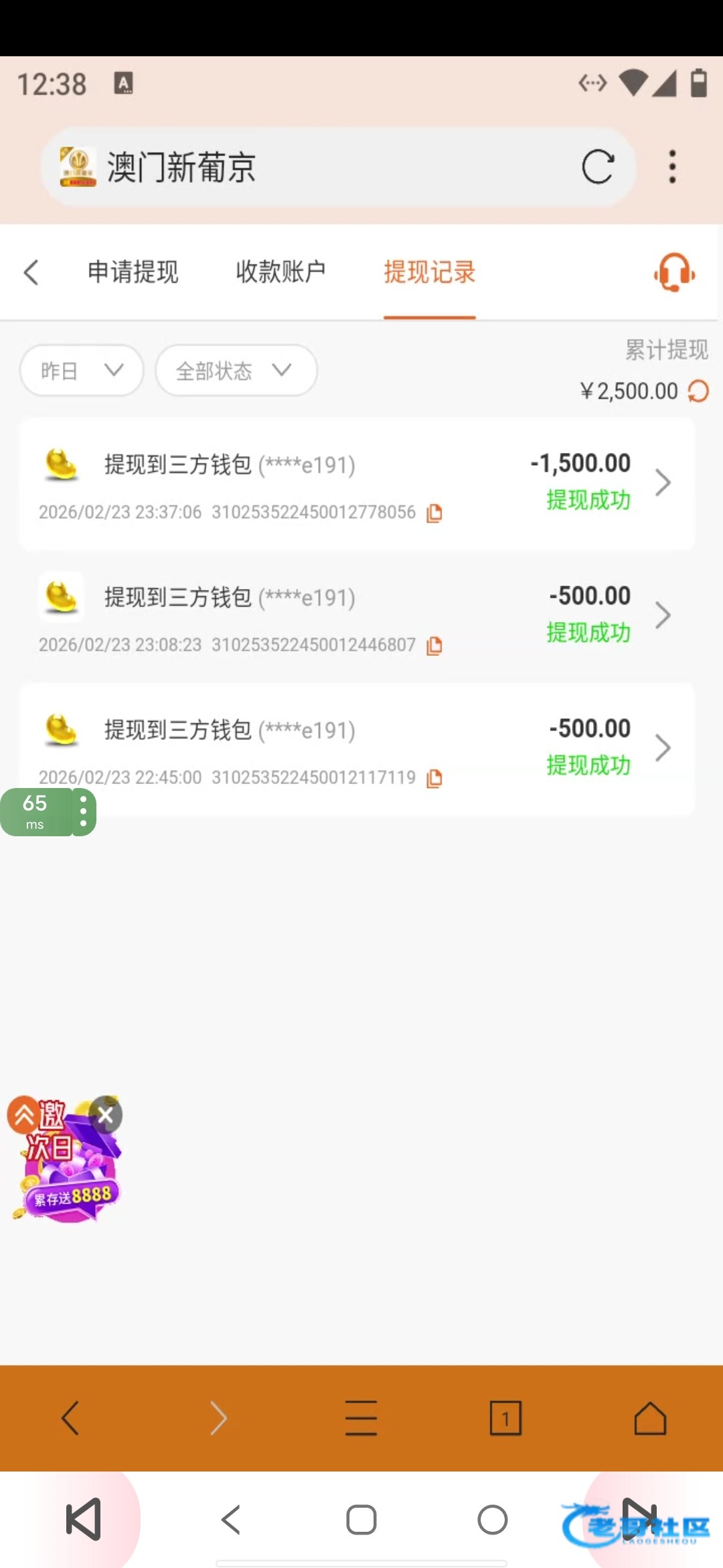 可以提,下午藏得5个6块免费,十点去充80搞了2500