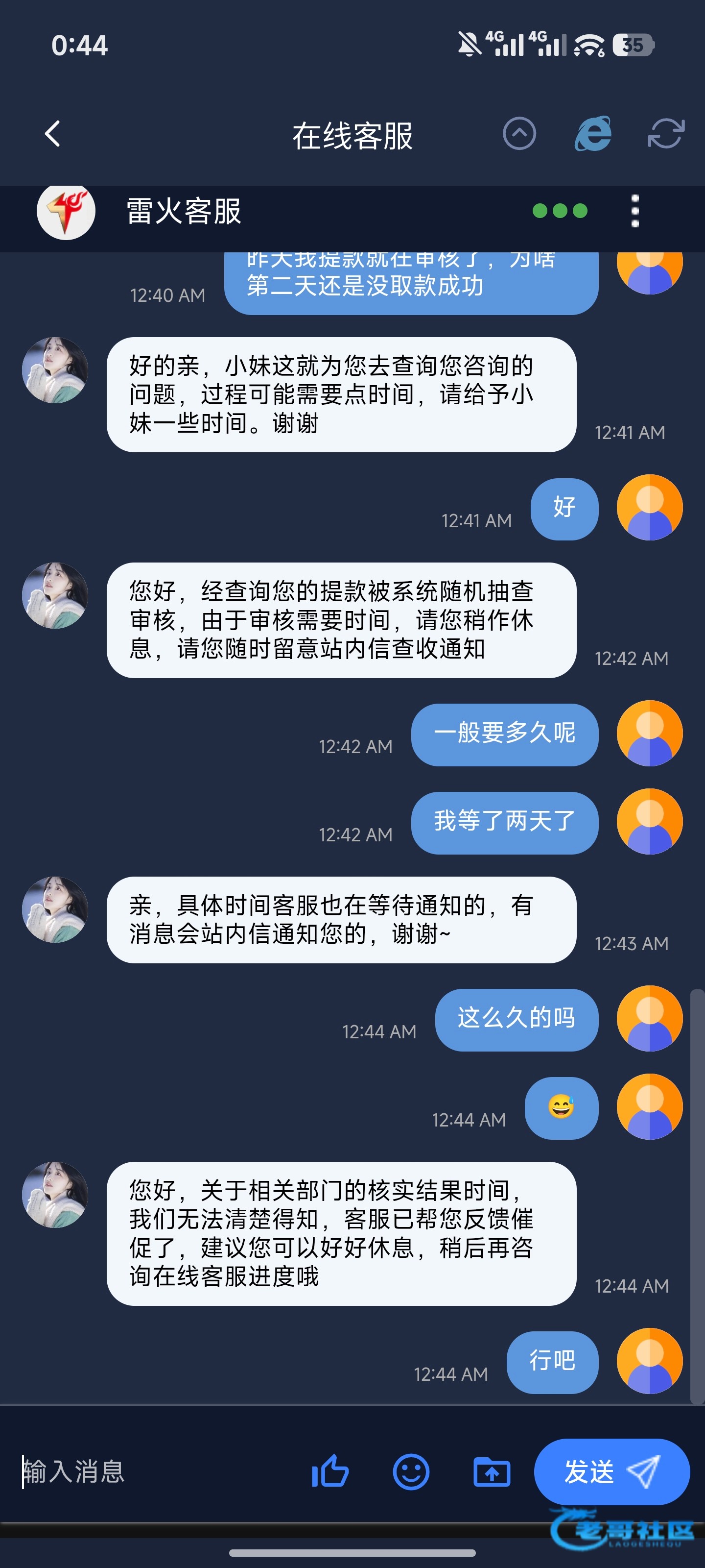 19号充值的 提现一直待支付 期间客服说审核 也不要手持 然后24号本金退回账户 打了一倍水出了