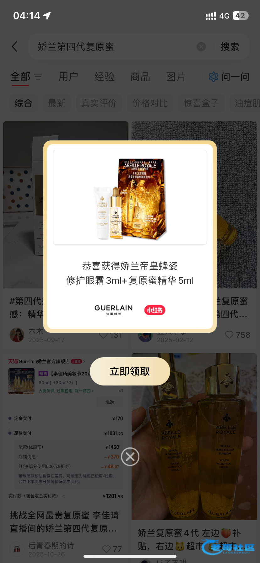 打开小红书搜索 娇兰第四代复原蜜
