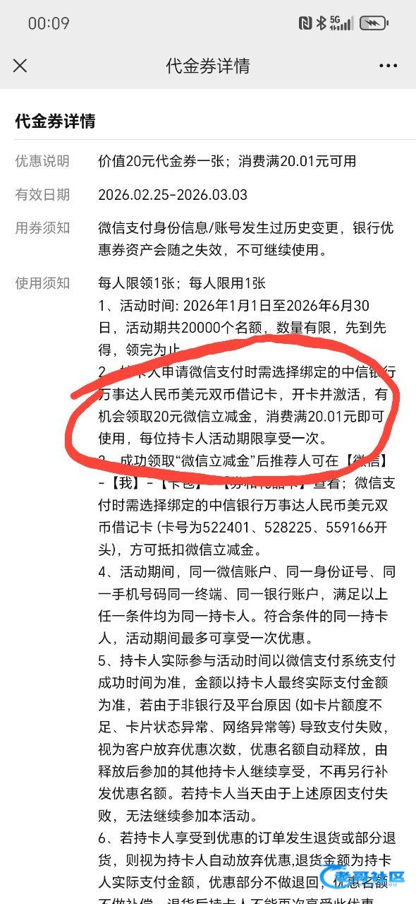 微信支付时需选择绑定的中信银行万事达人民币美元双币借记卡 (卡号为522401、528225、559166开头),方可抵扣微信立减金。