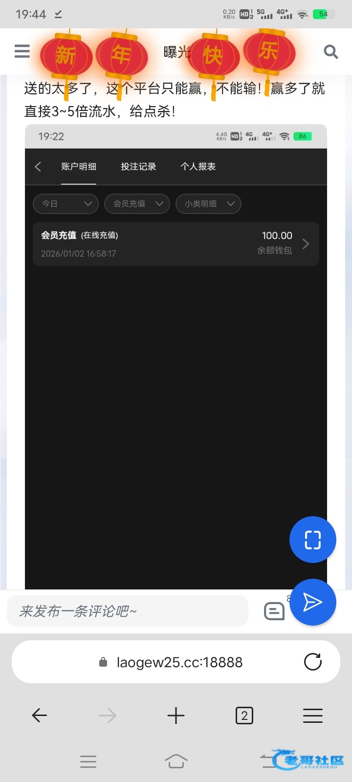 一代黑鬼 ▶ 中不了奖什么原因? 就没见过他这逼样的,一而再再而三都是这样子。意思就是充值玩。只能输不能赢。你赢一点就给你弄个提现退回叫你打三五倍流水。打流水的时候就给你点杀,不管你开0.2 10块一转,还是20块1转,都是30有25都是空的哈哈哈哈哈。就他这逼台所以说一点格局都没有。不黑你的款,就是给你点杀。懂意思不?所以说坑台。意思是你充值完赢了之后就给你退回说套利,tmd这样子搞,什么彩金都没领。哪来的套利退回叫你打个三五倍流水。别的台子哪里像他这个逼样的,要黑了直接封号了,tmd这狗日的这样子搞,直接就是耍猴啊,懂不 1月前