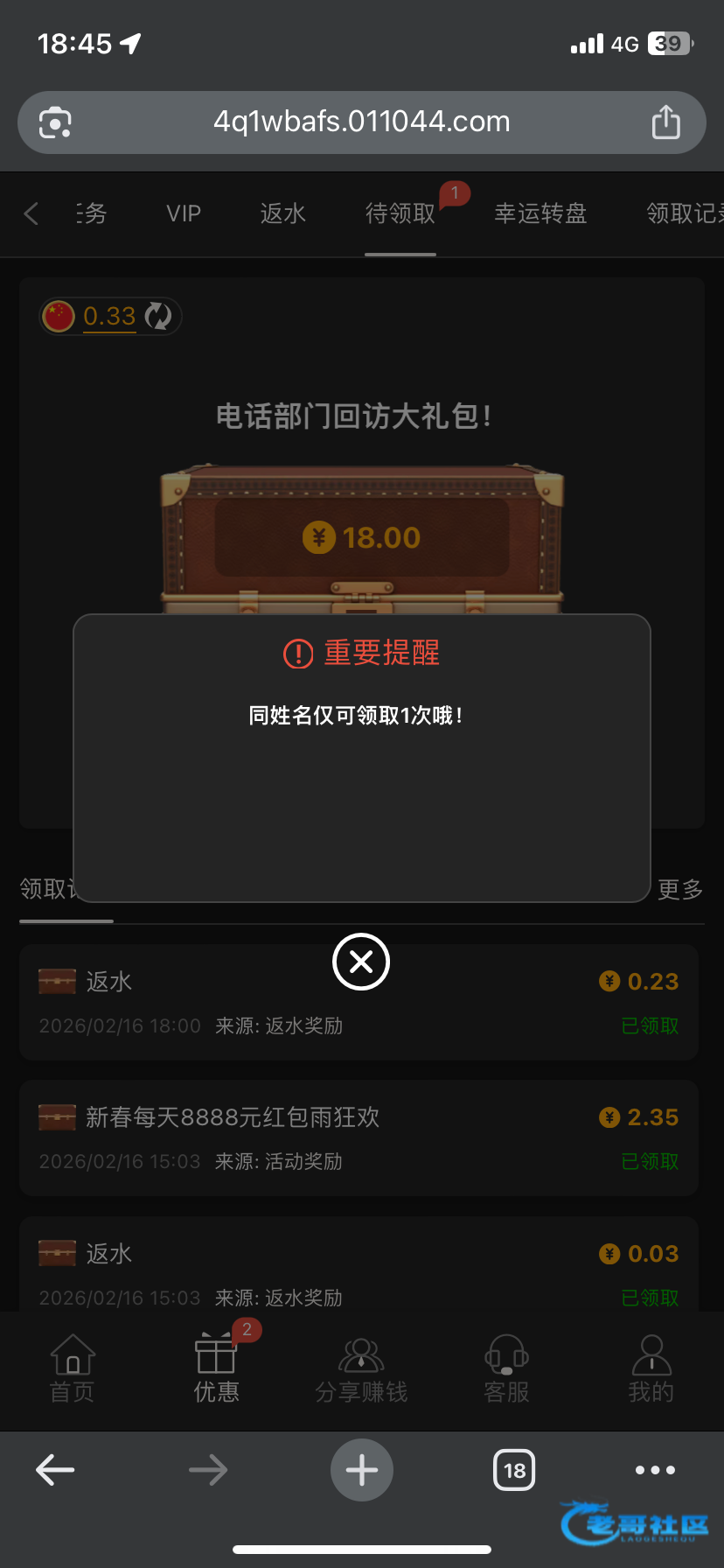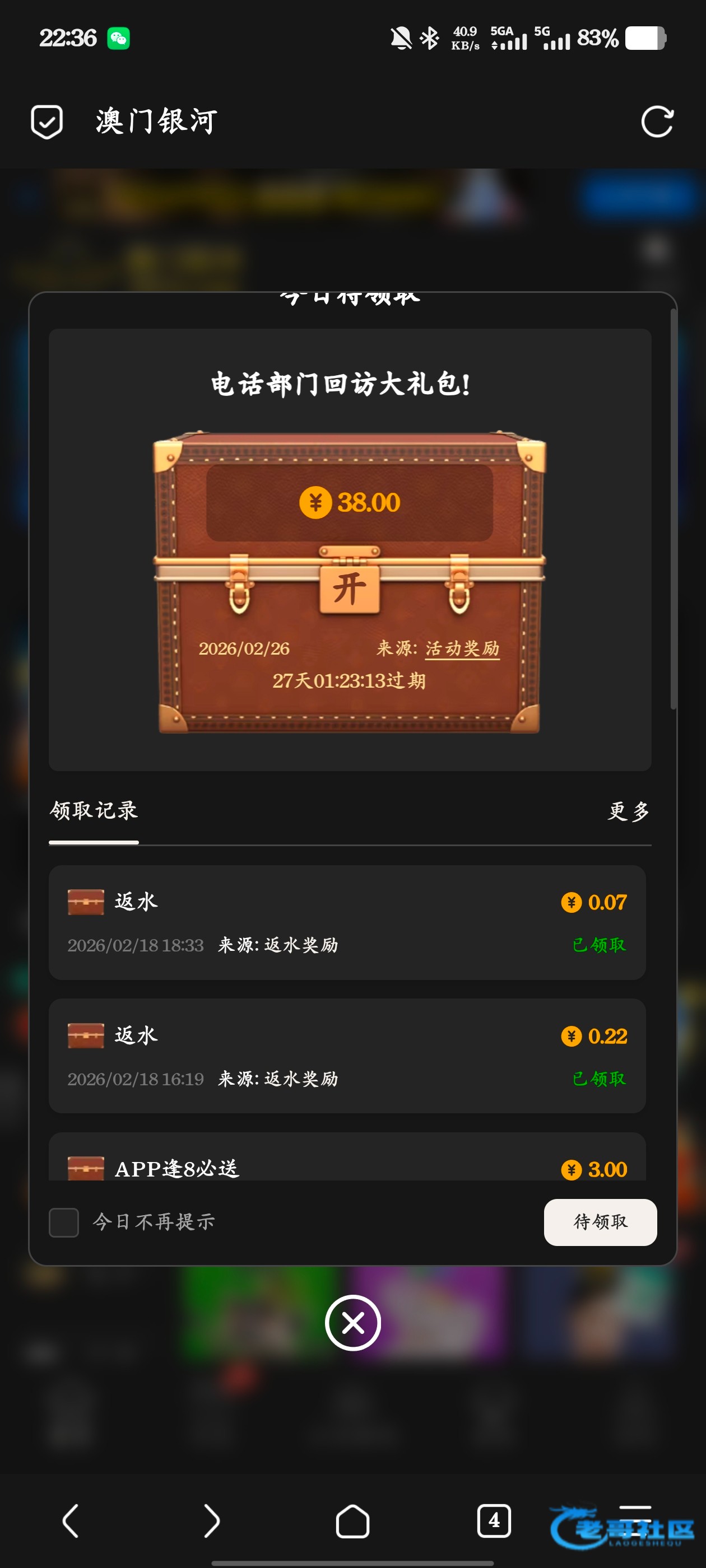 没有这次不知道是不是上次登陆的时间短