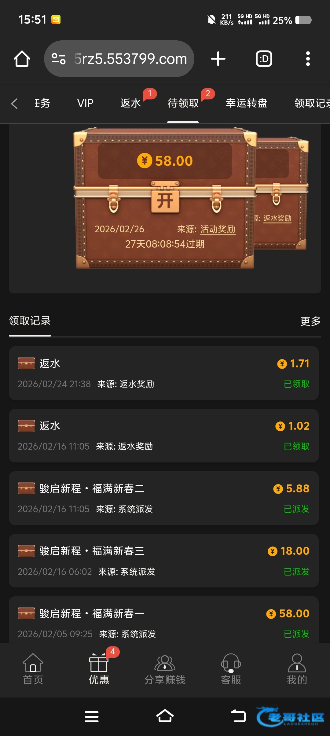 没送了 年前领个1888提了4600 这次没有 不知道是不是上次一个手机上过两个号的原因