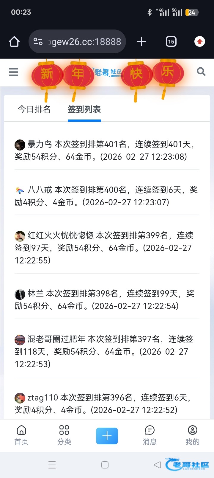 今天签到排名401,签到刚好401天,这也太巧了,这运气怎么就跑这来了呢?这运气要是放在打狗那该多好啊!