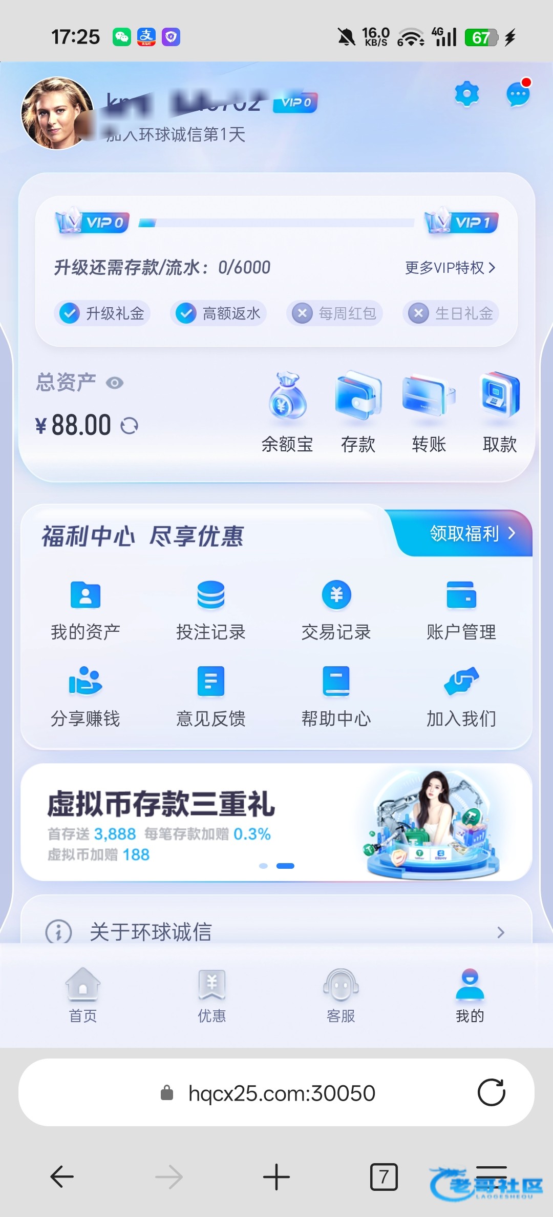 短信特邀彩金,老哥们可以去碰一下看了以前的帖子都是黑的不出款,我这不知道咋就给出款了,可能是我提供了最近别的台子的流水给出款的吧,老哥们嘴下留情能不能出我也不确定!链接https://qwe.zlnbb.cn/