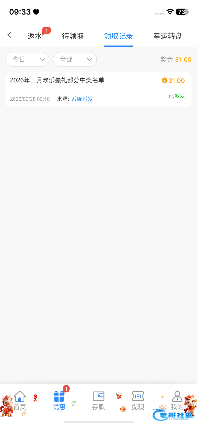 我就去看了一下送了我31块彩金这个狗逼狗庄过年三天充了一万多进去送这么点