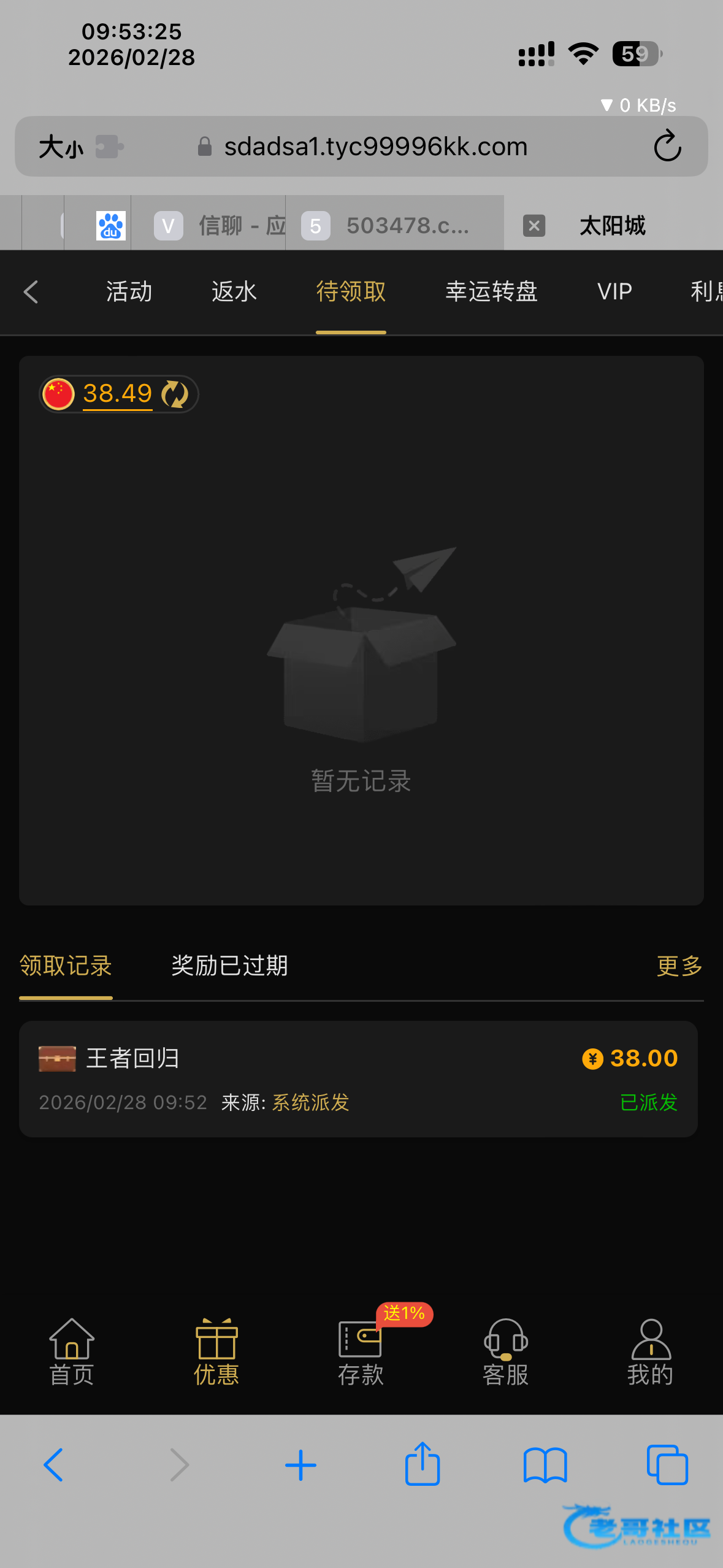 太阳城99996.com,电话回访彩金,电话刚打来的电话,vip1,没充值过,送了38,有号的老哥上号看看